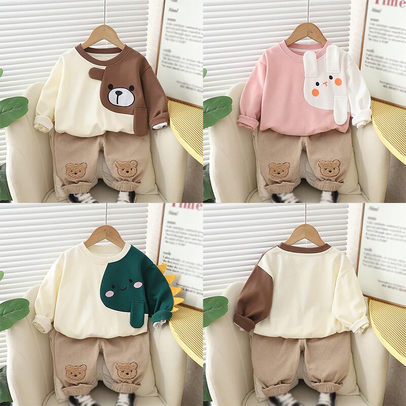 秋子供赤ちゃん男子セット子供スーツ子供長袖漫画綿トレーナーパンツ秋装 ロング コットン キッズ