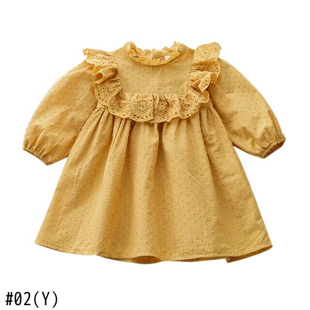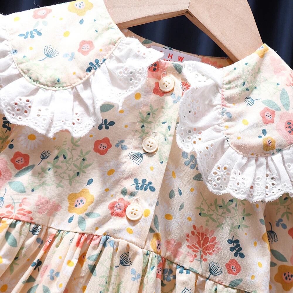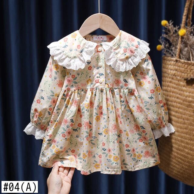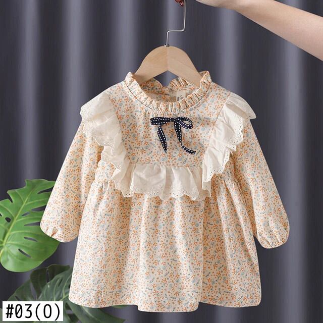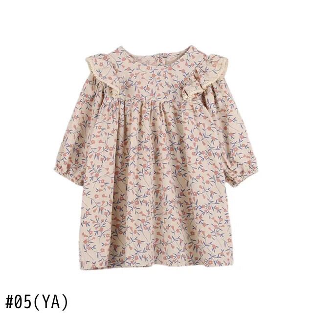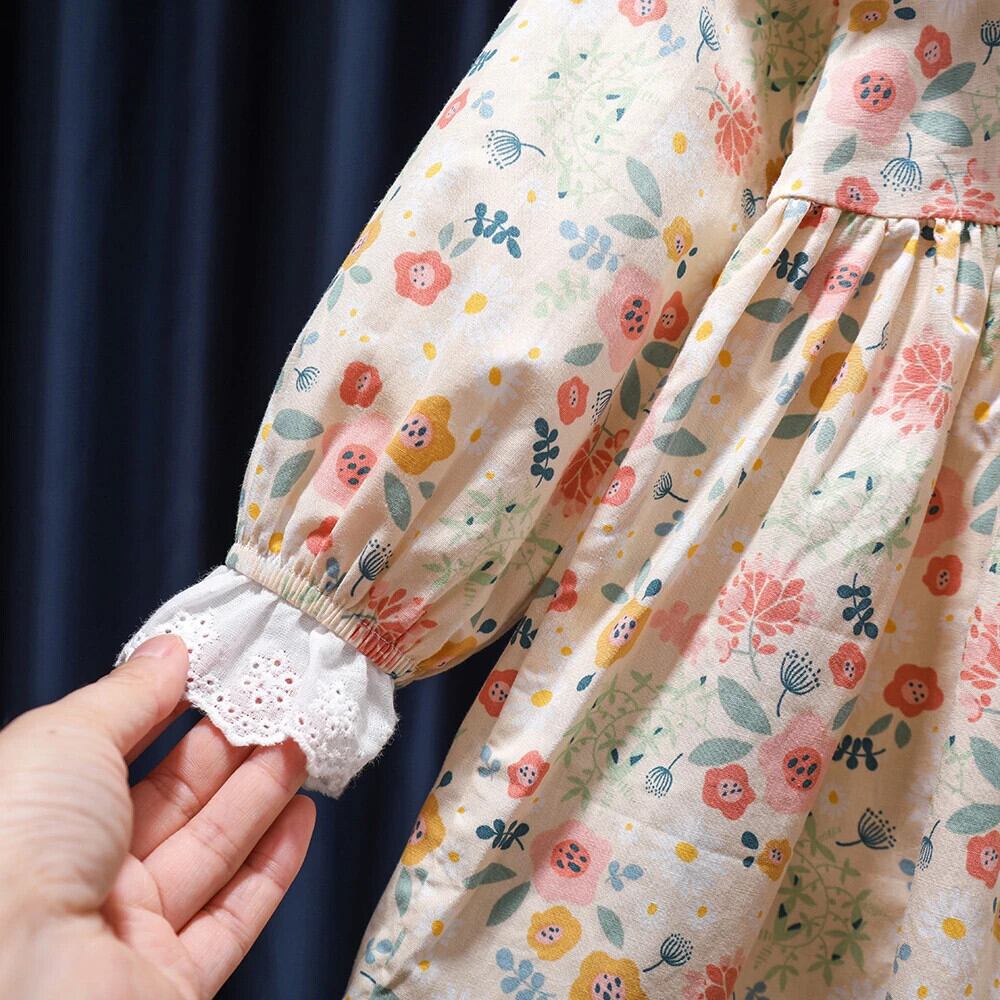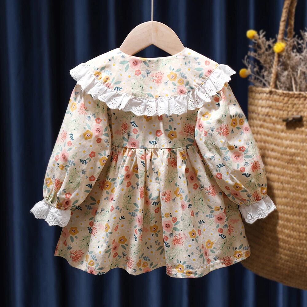 女赤ちゃん花柄ドレス春秋スタイル長袖レース人形襟キッズガールドレス ロング スプリング 春物 オータム 秋物