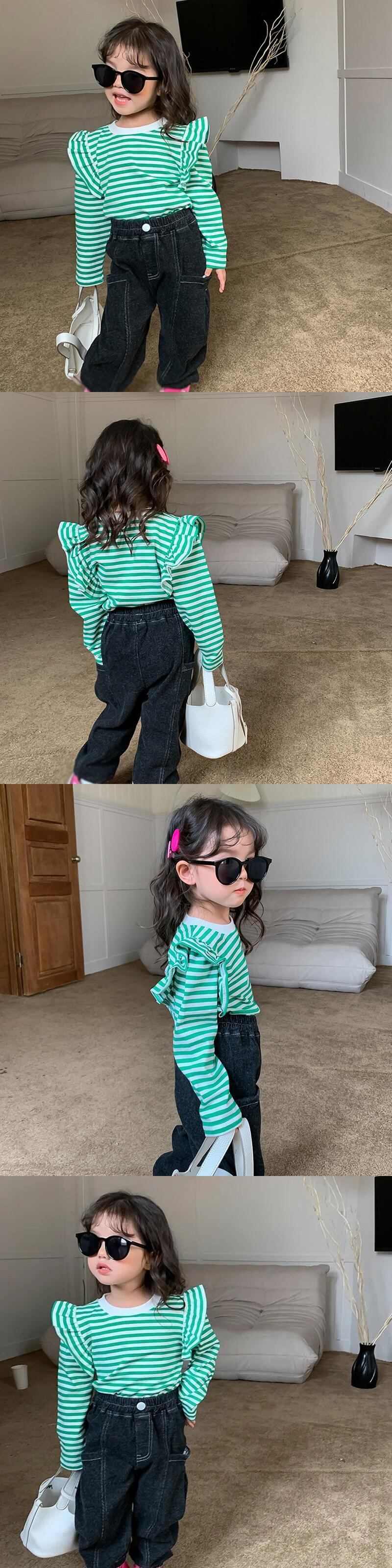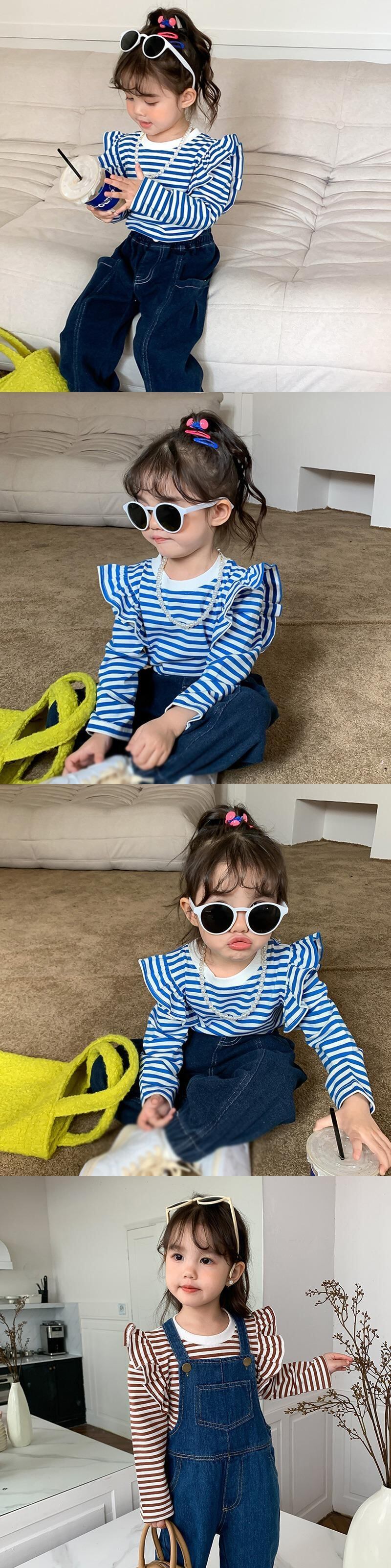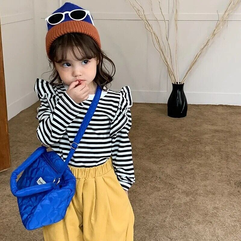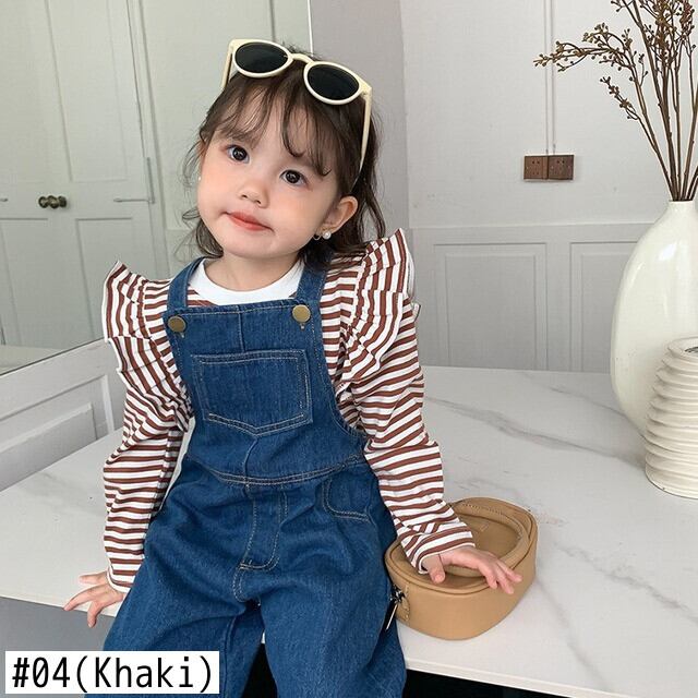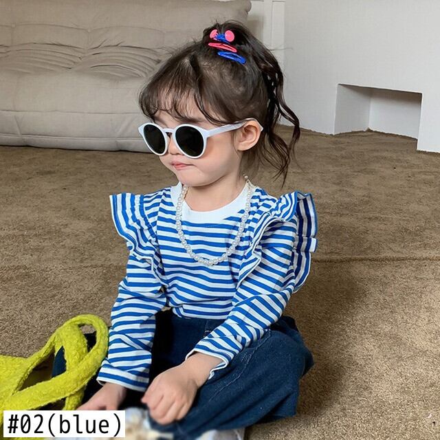 キッズガールズストライプ Tシャツ長袖秋幼児女赤ちゃんフライングスリーブトップ底入れシャツプルオーバー ロング オータム 秋物