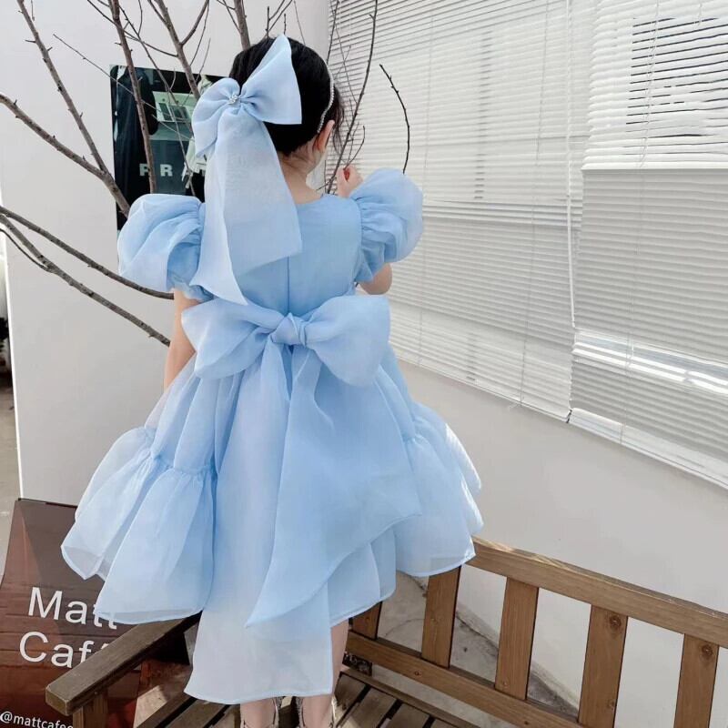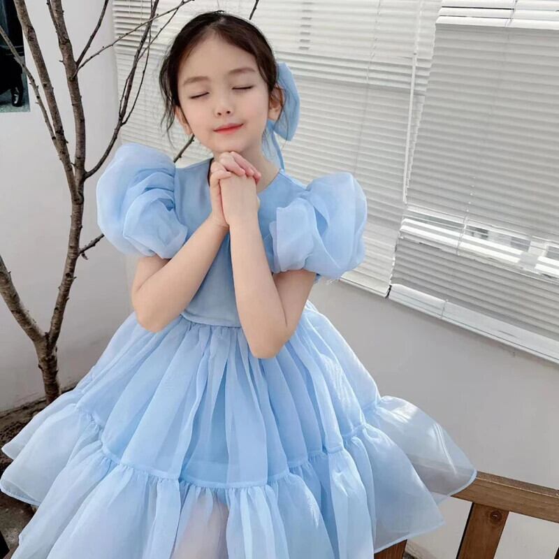女子サマードレスバブルスリーブ誕生日ドレスパーティードレスベビー幼児ガールドレス2-7Y 夏物
