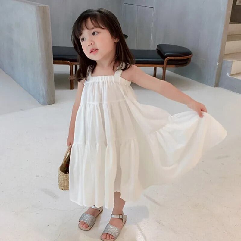 夏キッズベビーガールズサスペンダードレス子供ドレス大き裾ドレスかわいいビーチ 大人ガーリー スウィート キュート カジュアル サマー 夏物 ソリッドカラー