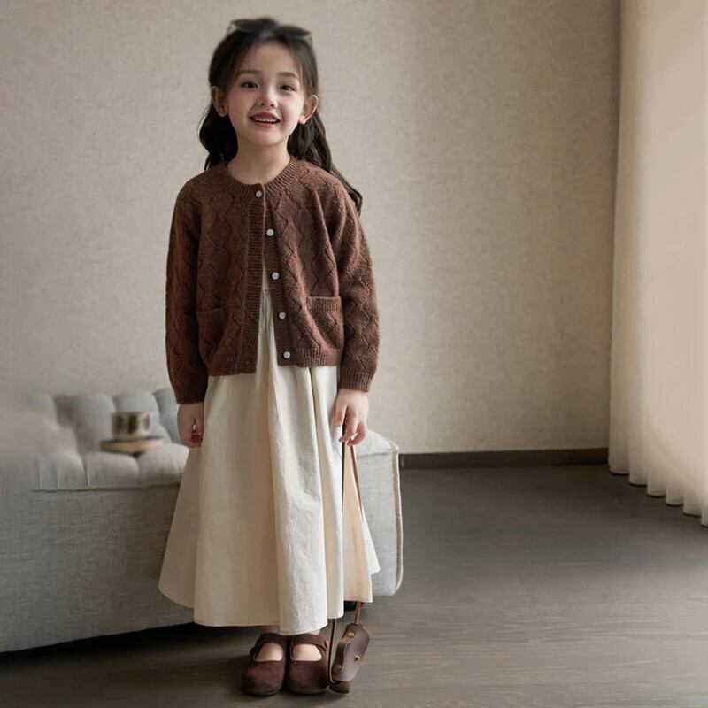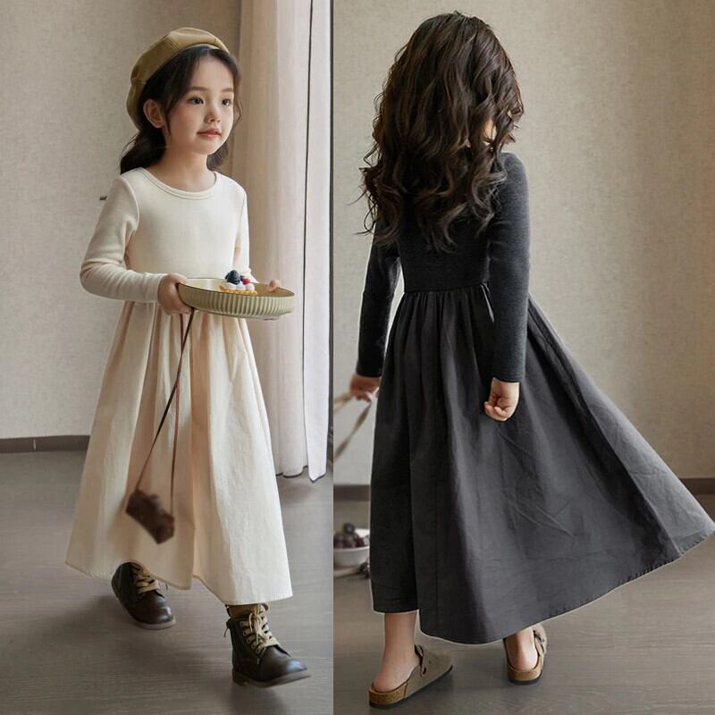 春子供女子ドレスキッズドレスニットスプライシング子供ドレス 3-9 年 スプリング 春物