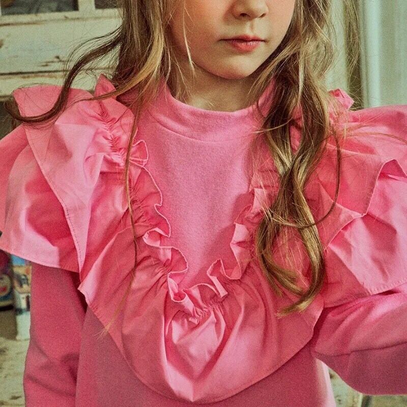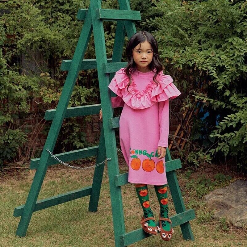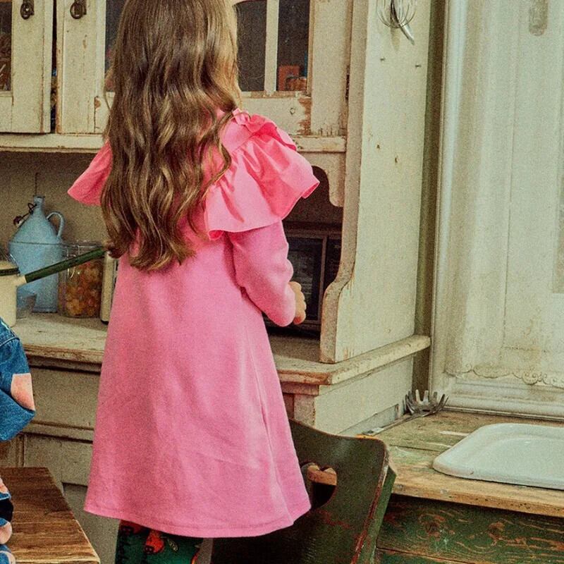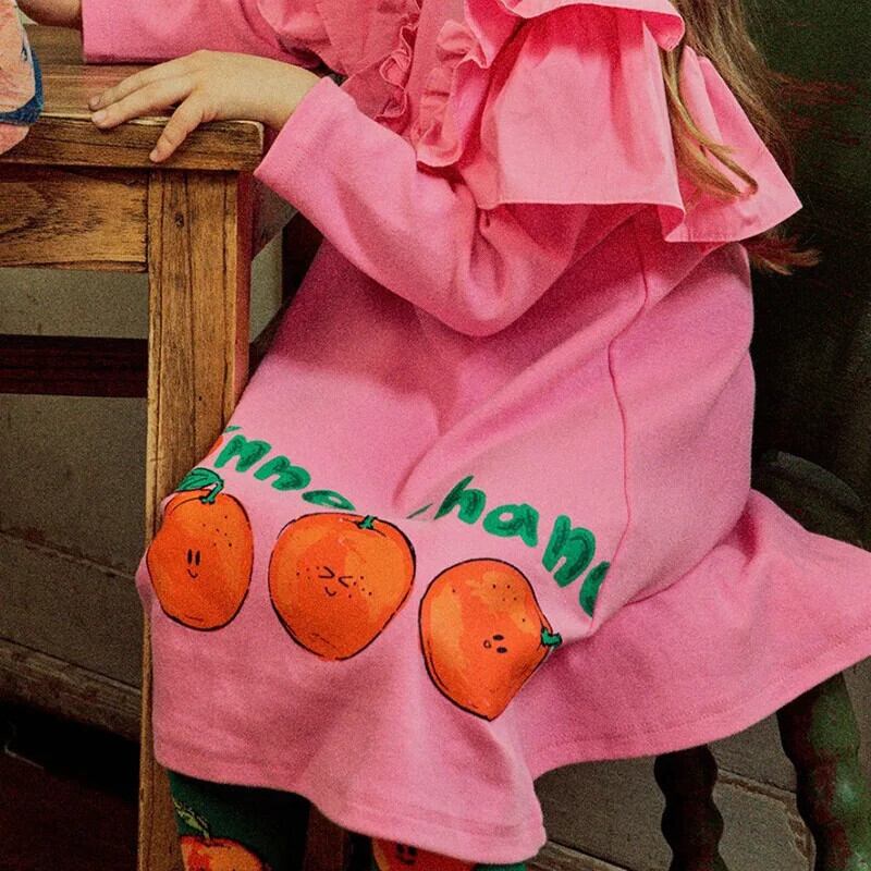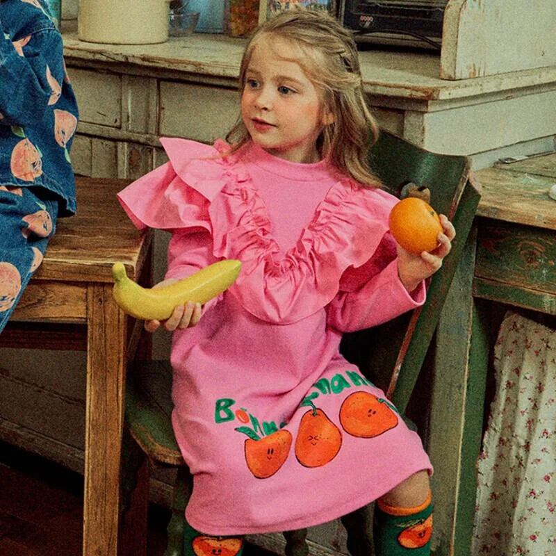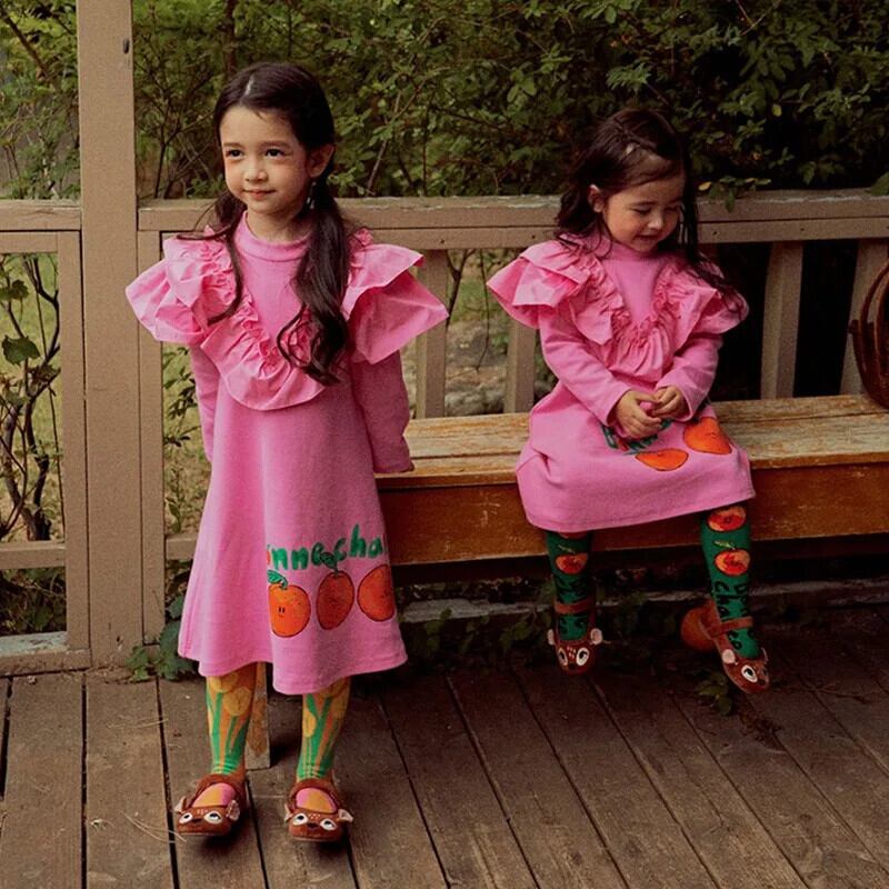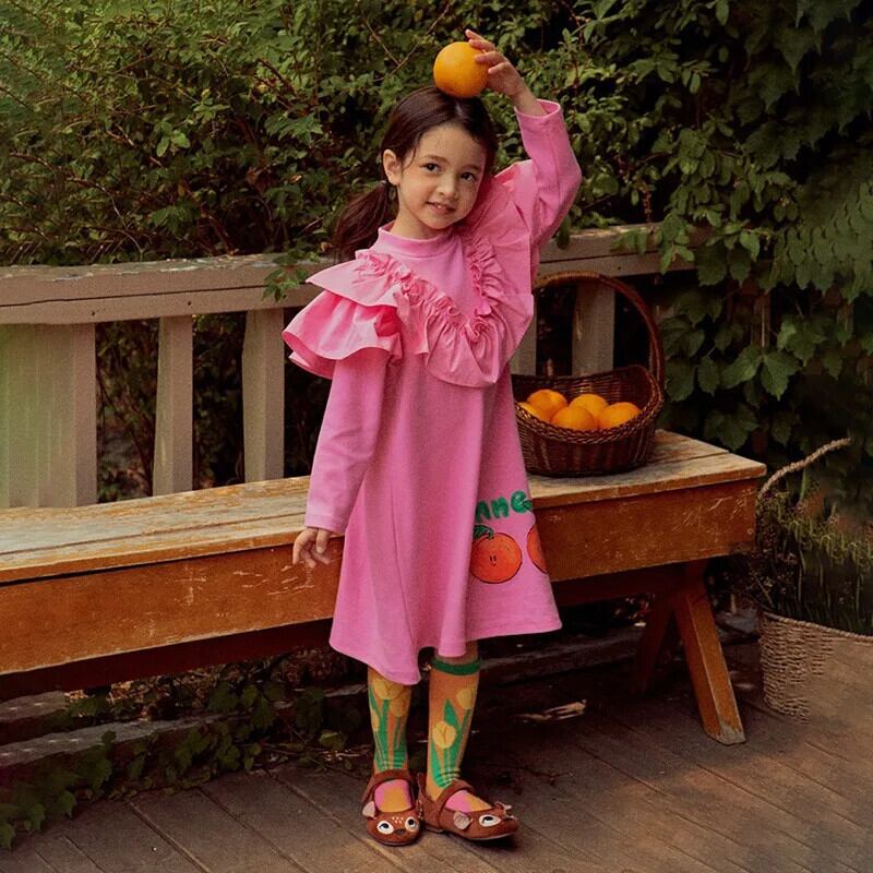 秋赤ちゃん女子ドレス子供女子ルーズスタイルキッズシンプルかわいいプリントフリル長袖ドレス ロング 大人ガーリー スウィート キュート カジュアル オータム 秋物