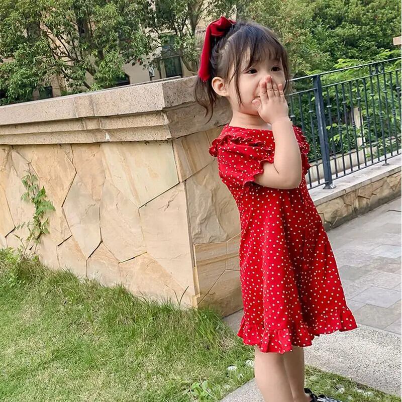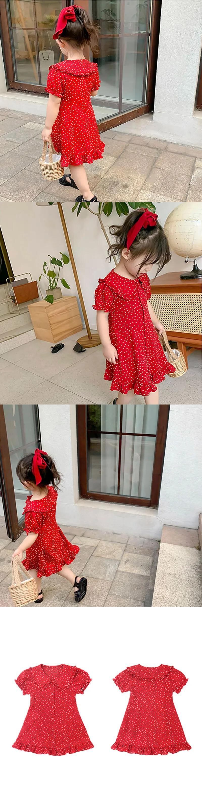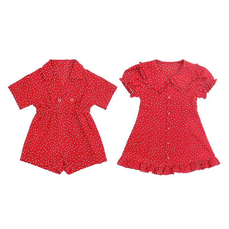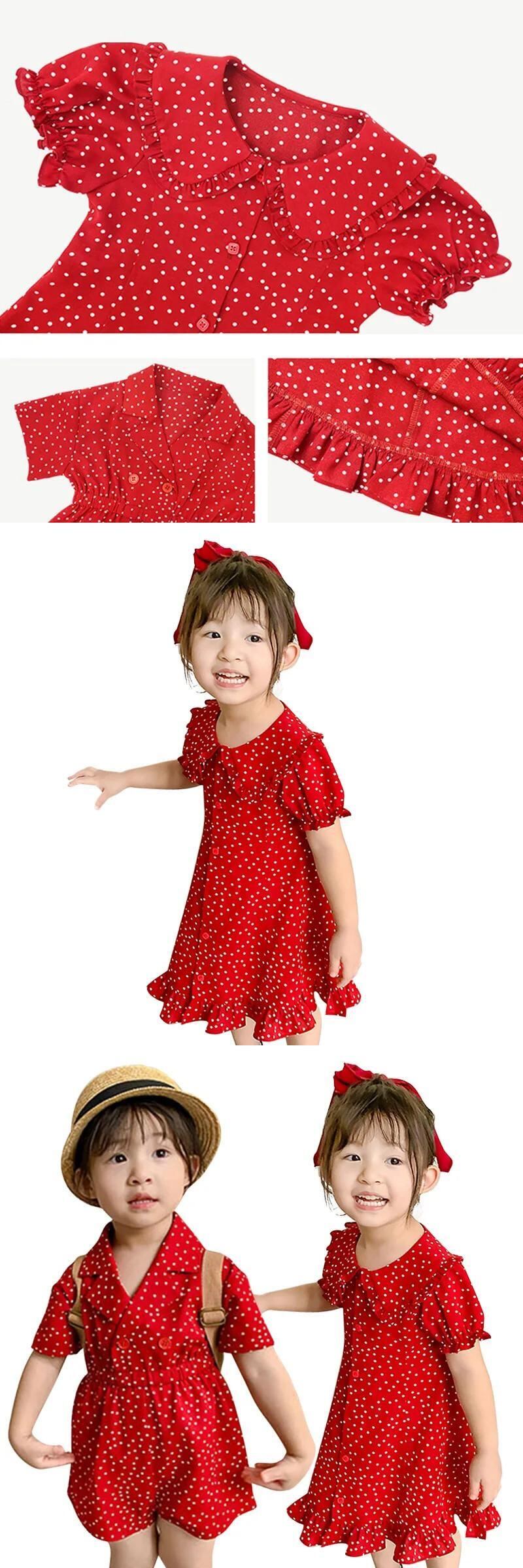 夏女赤ちゃんドレス子供水玉プリントかわいい赤いドレス子供休日綿半袖 ショート レッド コットン ハーフスリーブ 大人ガーリー スウィート キュート カジュアル サマー 夏物 キッズ
