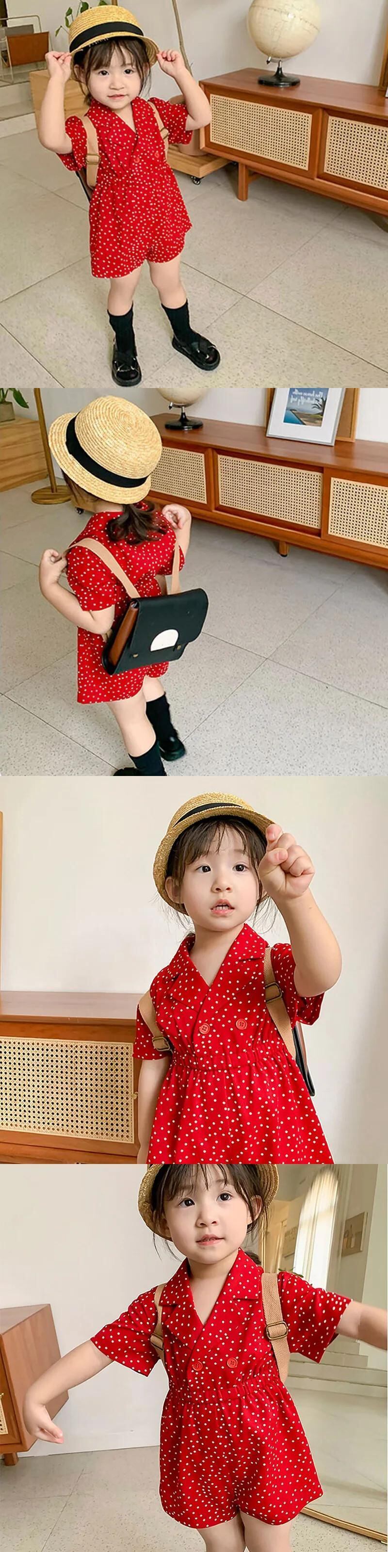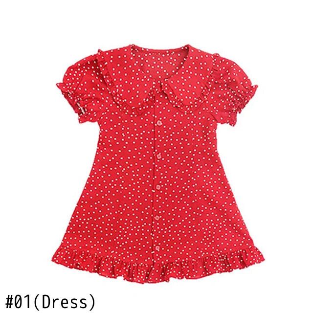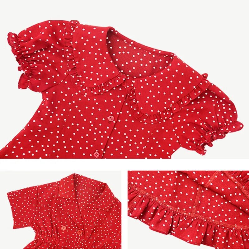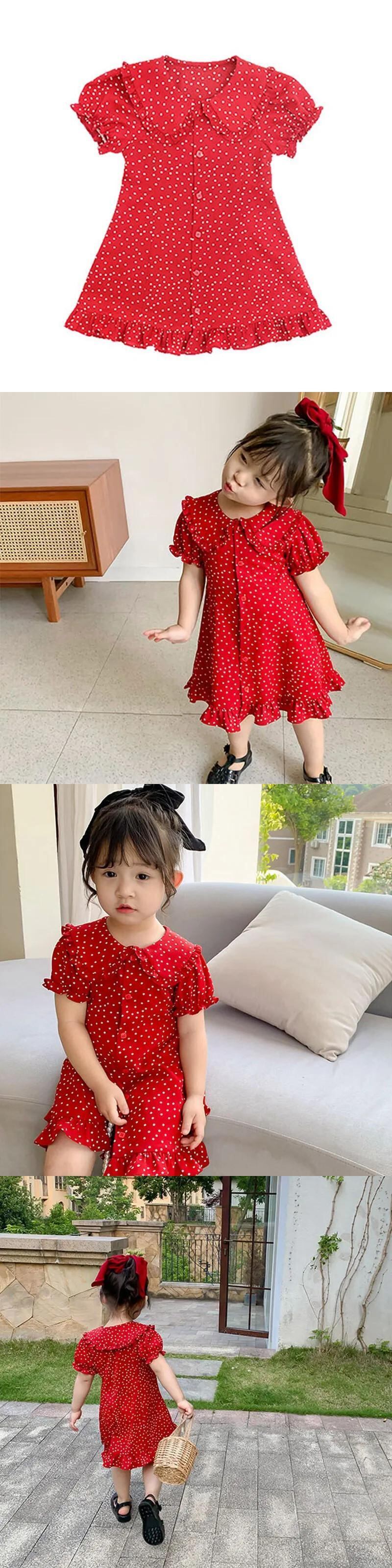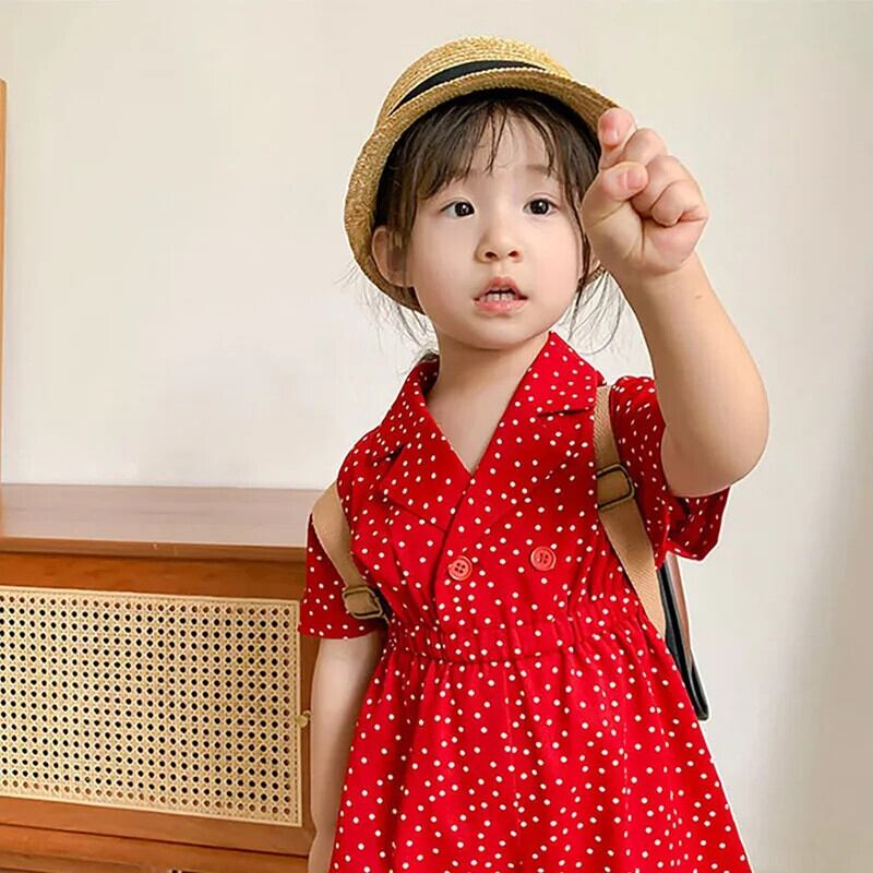 夏女赤ちゃんドレス子供水玉プリントかわいい赤いドレス子供休日綿半袖 ショート レッド コットン ハーフスリーブ 大人ガーリー スウィート キュート カジュアル サマー 夏物 キッズ