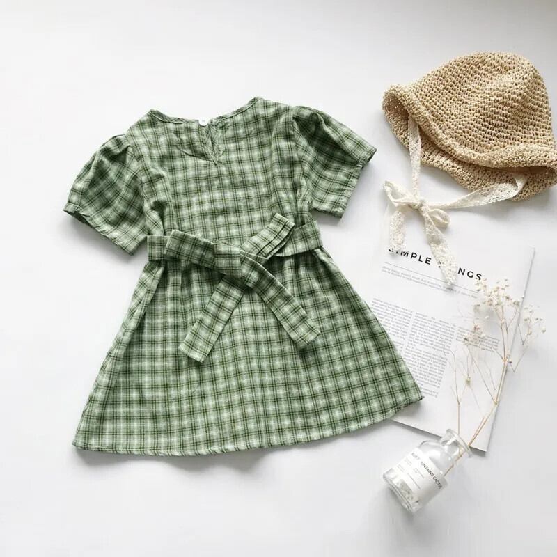 女赤ちゃんドレス夏子供女子ドレスチェック柄プリント子供パーティーサンドレス子供 サマー 夏物