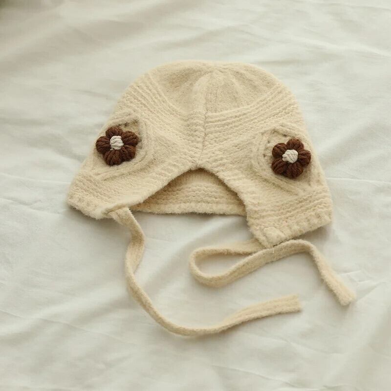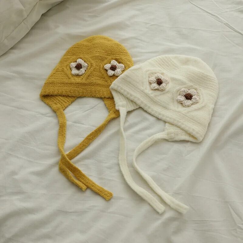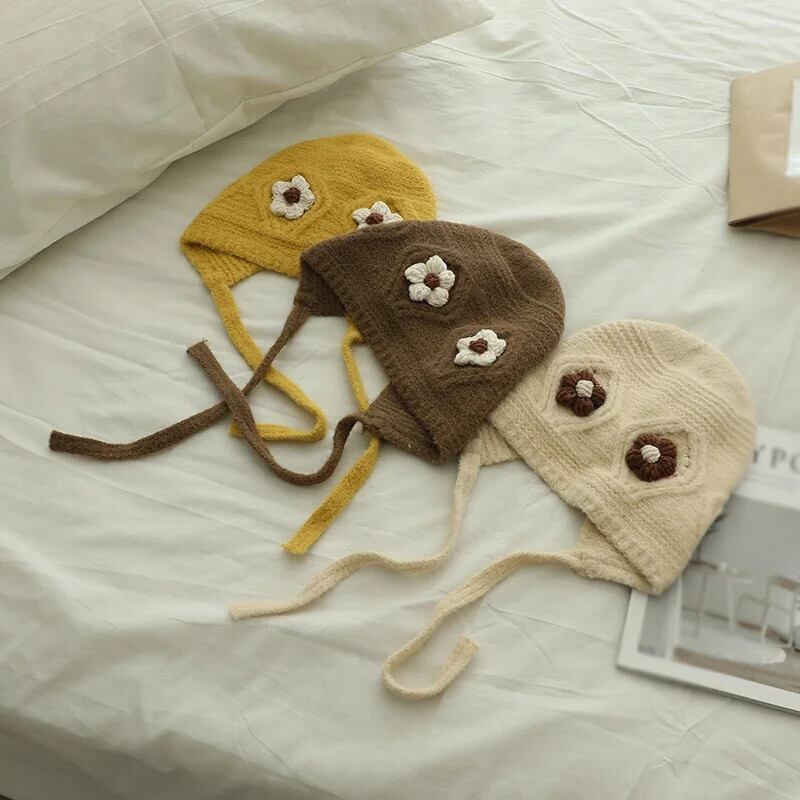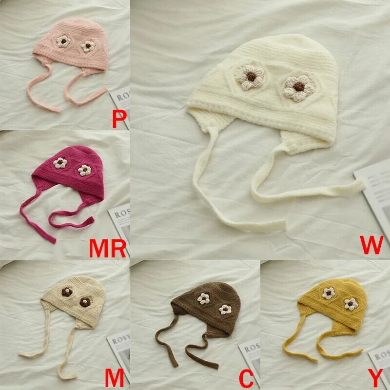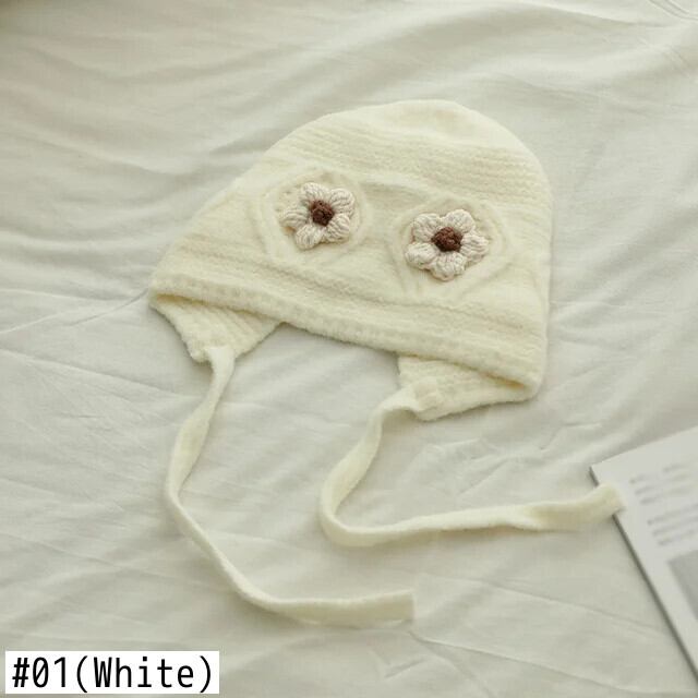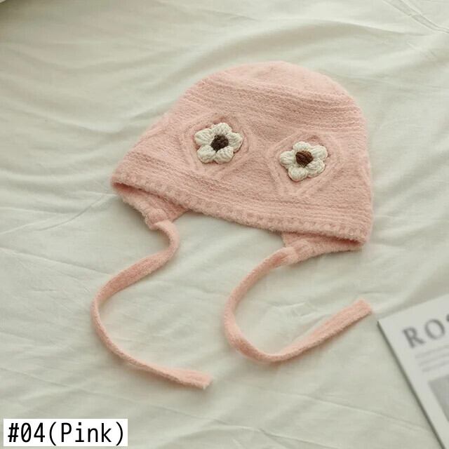 秋冬耳保護かわいい花柄ベビー帽子暖かいニット子供ひもキャップ幼児少年少女ビーニーボンネット 大人ガーリー スウィート キュート カジュアル オータム 秋物 ウィンター 冬物 キッズ ヘアアクセサリー ソリッドカラー | Princess
