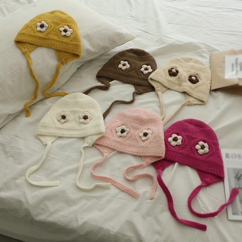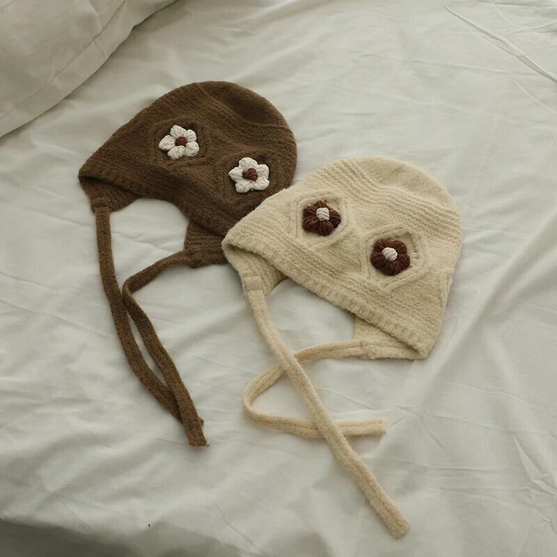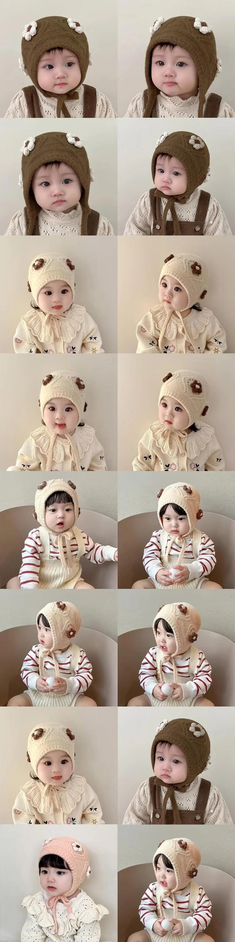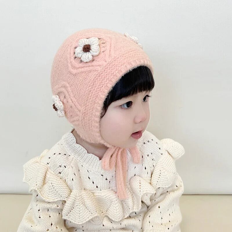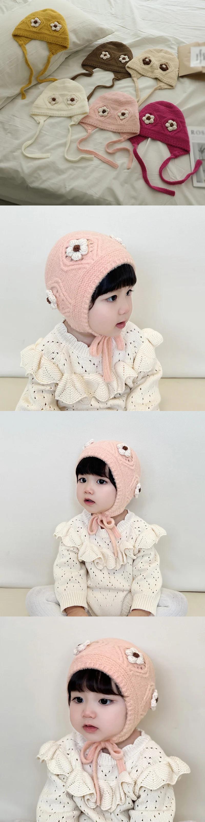 秋冬耳保護かわいい花柄ベビー帽子暖かいニット子供ひもキャップ幼児少年少女ビーニーボンネット 大人ガーリー スウィート キュート カジュアル オータム 秋物 ウィンター 冬物 キッズ ヘアアクセサリー ソリッドカラー | Princess