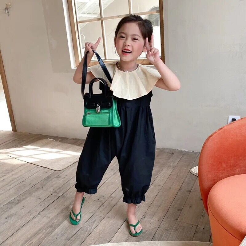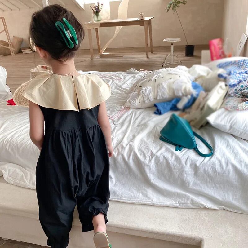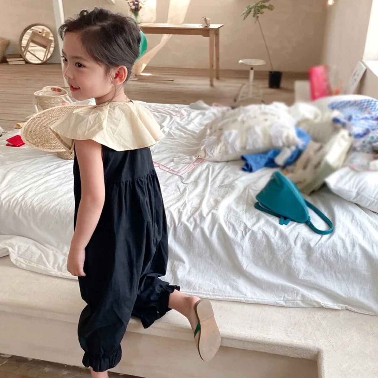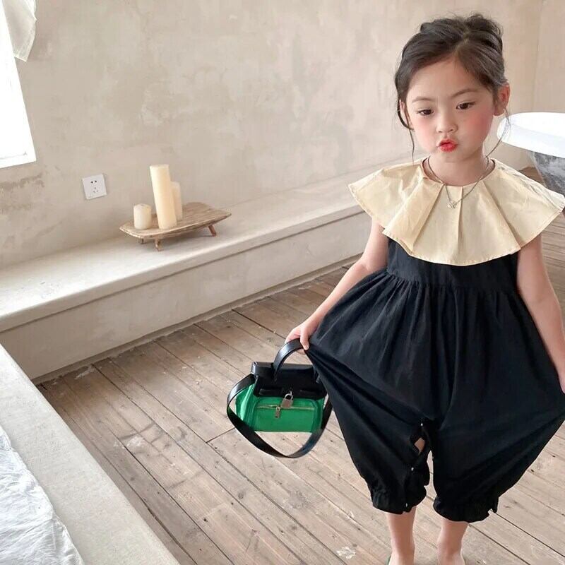子供女子ジャンプスーツビッグかわいいフリル襟パンツ夏キッズガールノースリーブルーズレッグジャンプスーツ子供 大人ガーリー スウィート キュート カジュアル サマー 夏物