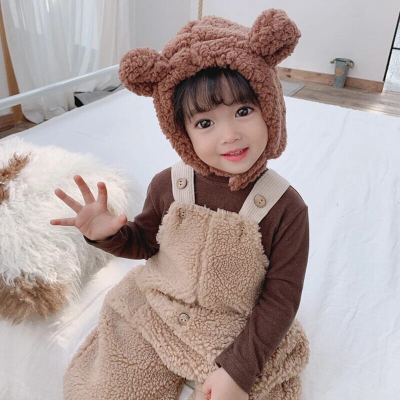 秋冬ベビーボーイズガールズ帽子フリースかわいいウサギ耳キャップ子供キッズ暖かいぬいぐるみ漫画耳保護暖かい帽子 0-3Y 大人ガーリー スウィート キュート カジュアル オータム 秋物 ウィンター 冬物 ソリッドカラー