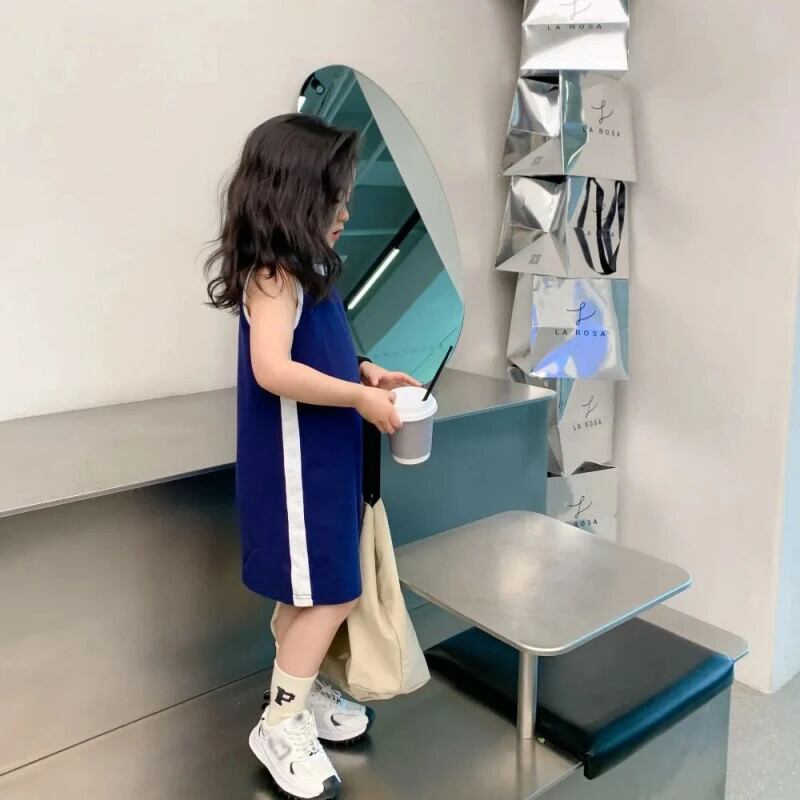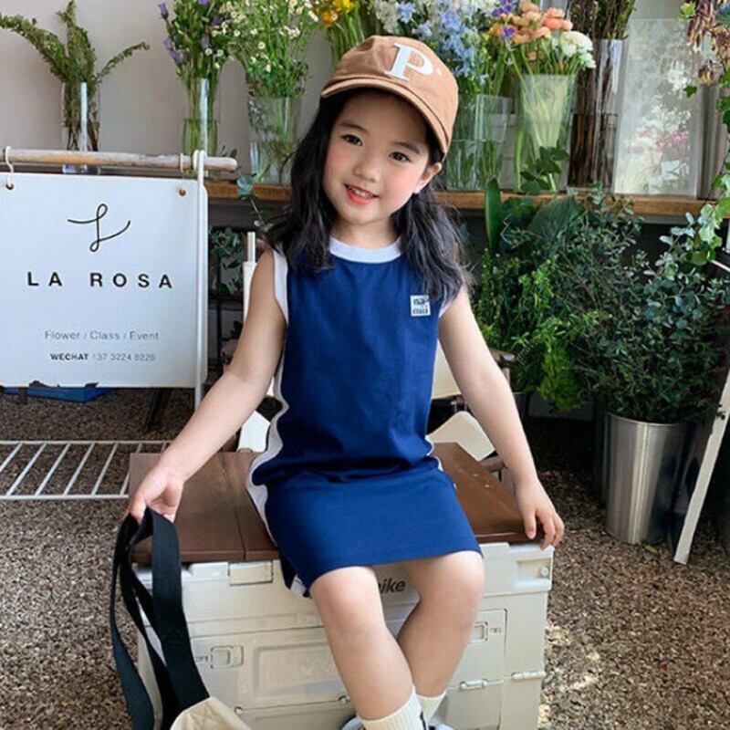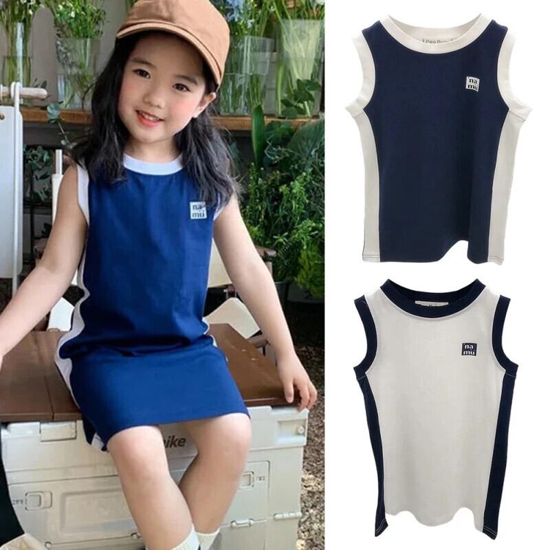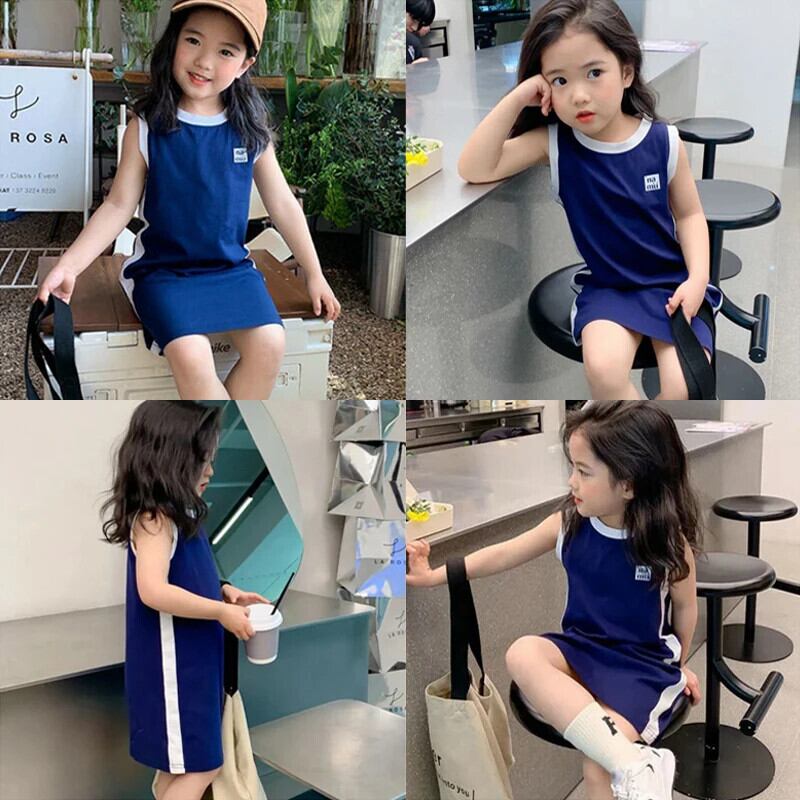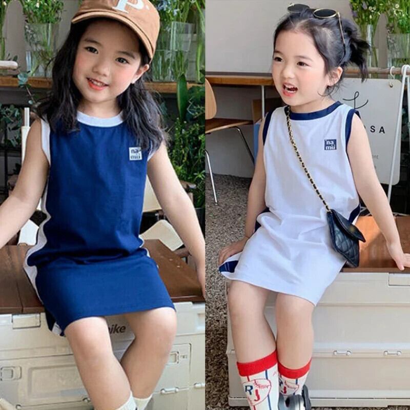 夏幼児ドレススポーツカラーブロックストレートノースリーブ Tシャツタンクトップドレス女赤ちゃんドレス サマー 夏物