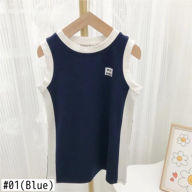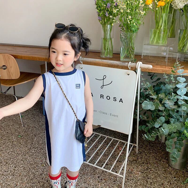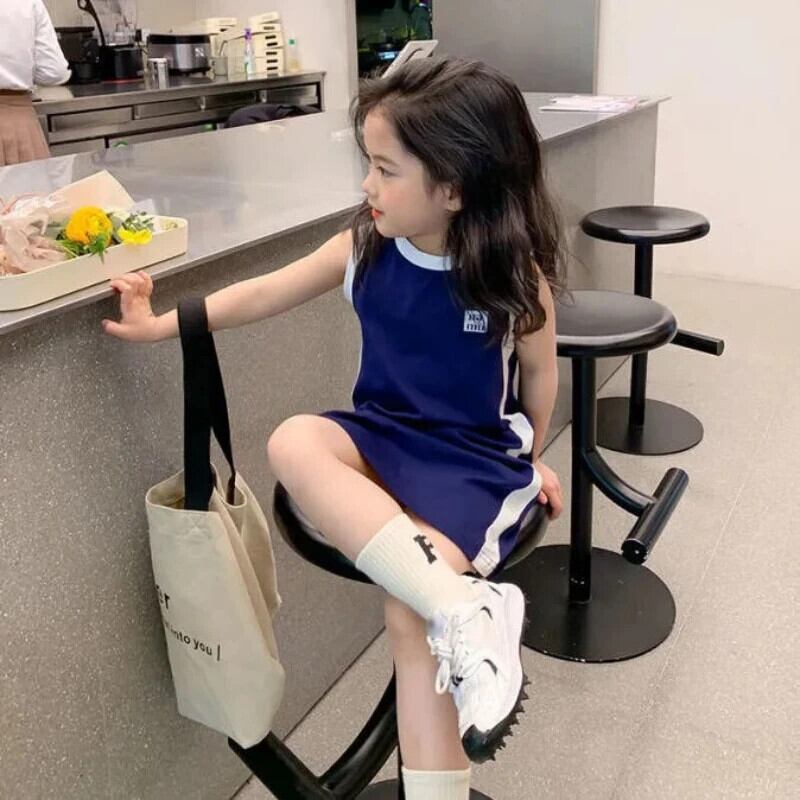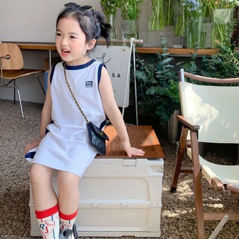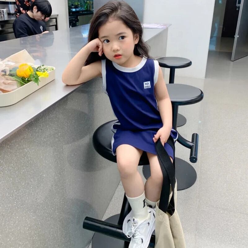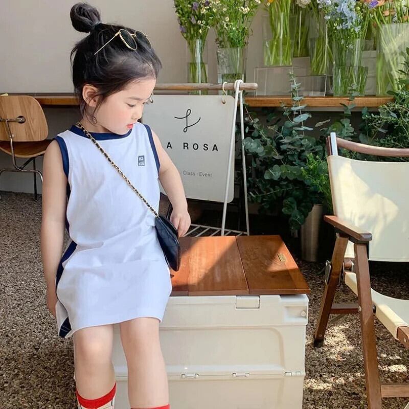 夏幼児ドレススポーツカラーブロックストレートノースリーブ Tシャツタンクトップドレス女赤ちゃんドレス サマー 夏物