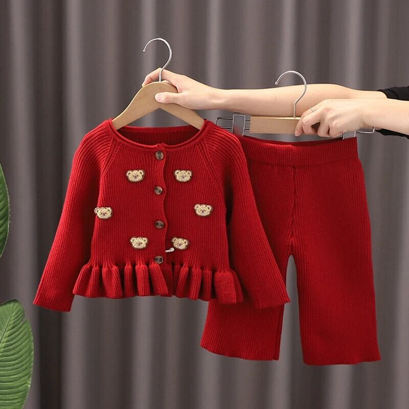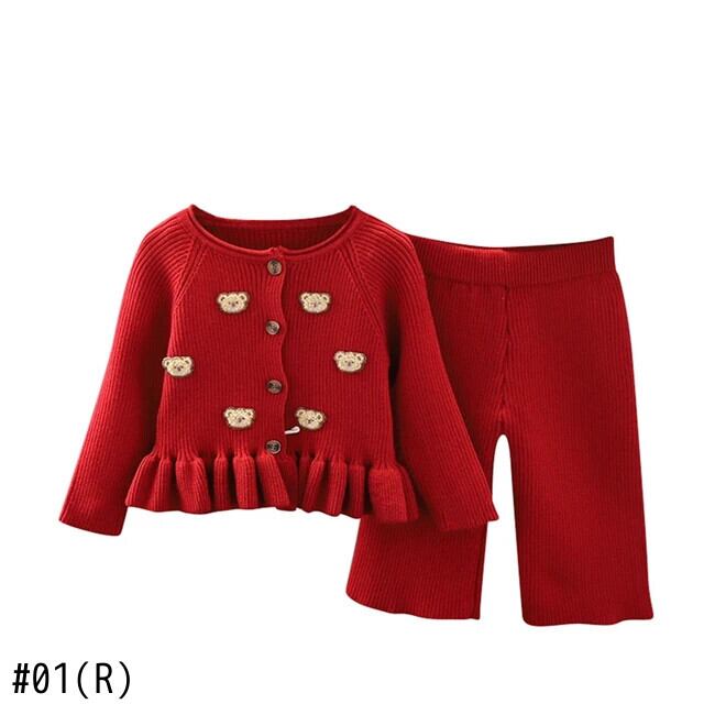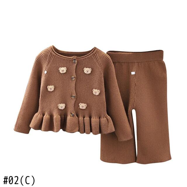 Childern ベビーセット冬秋かわいいクマニットスプリットスーツコントラストカーディガン + ボトムス女子ツーピーススーツ 大人ガーリー スウィート キュート カジュアル オータム 秋物 ウィンター 冬物 | Princess