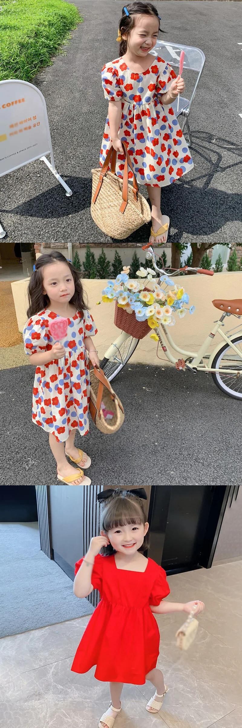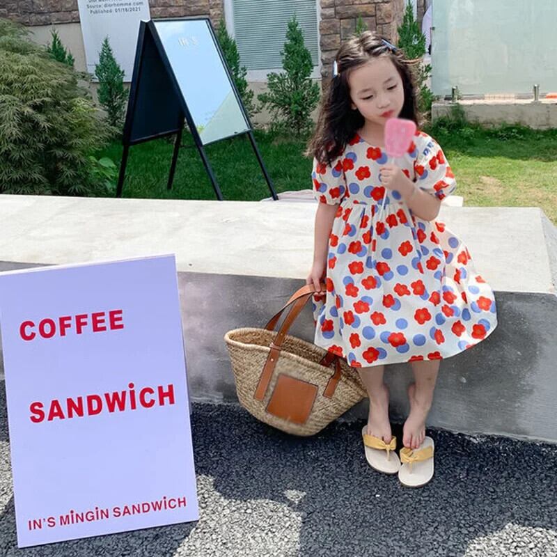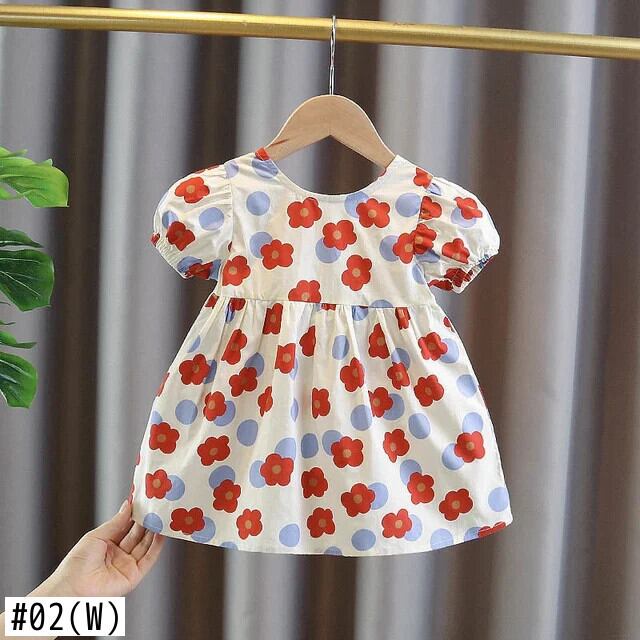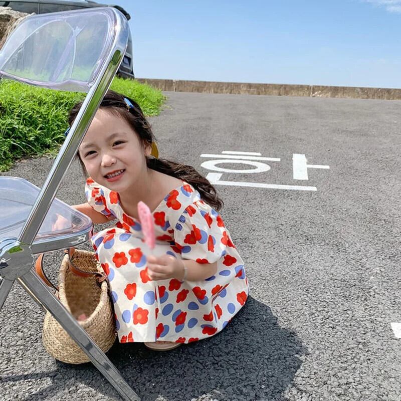 スタイルベビーガールドレス夏子供キッズかわいいフラワープリント半袖ドレス 大人ガーリー スウィート キュート カジュアル サマー 夏物 フラワーデザイン
