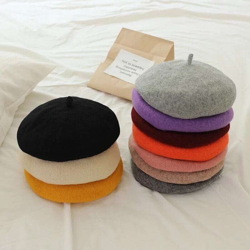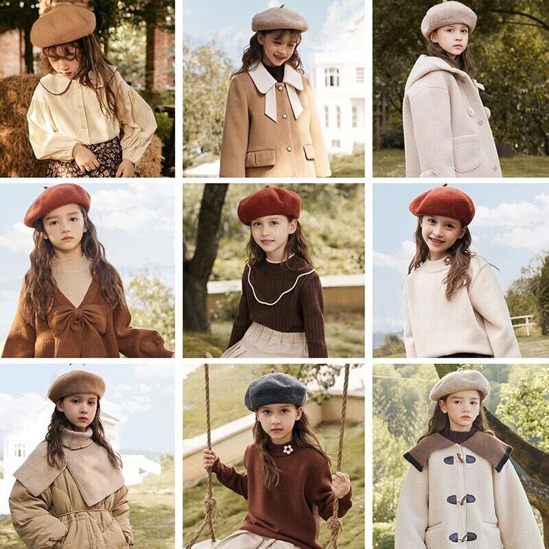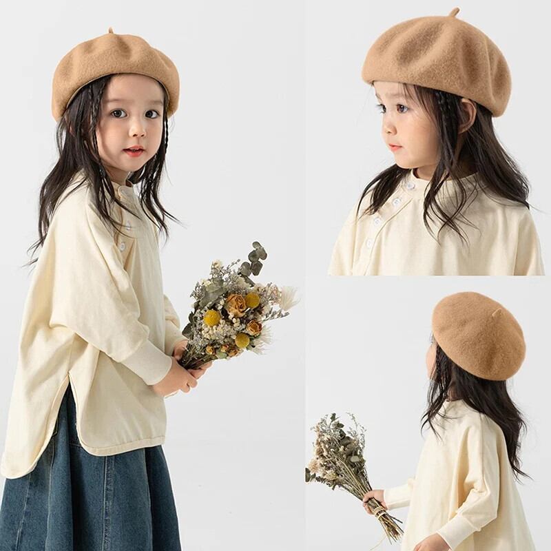 ベビーウールベレー帽 Clic 無地ベレー帽帽子画家帽子子供キャップ多用途ソフト秋冬屋外暖かい帽子 オータム 秋物 ウィンター 冬物 キッズ ベレット ヘアアクセサリー ソリッドカラー