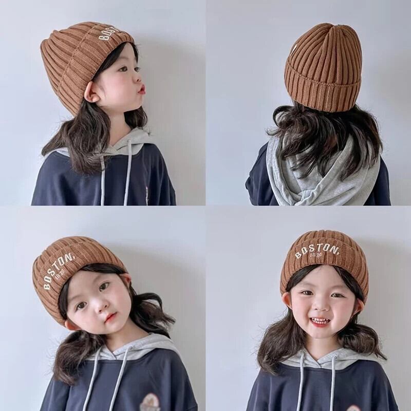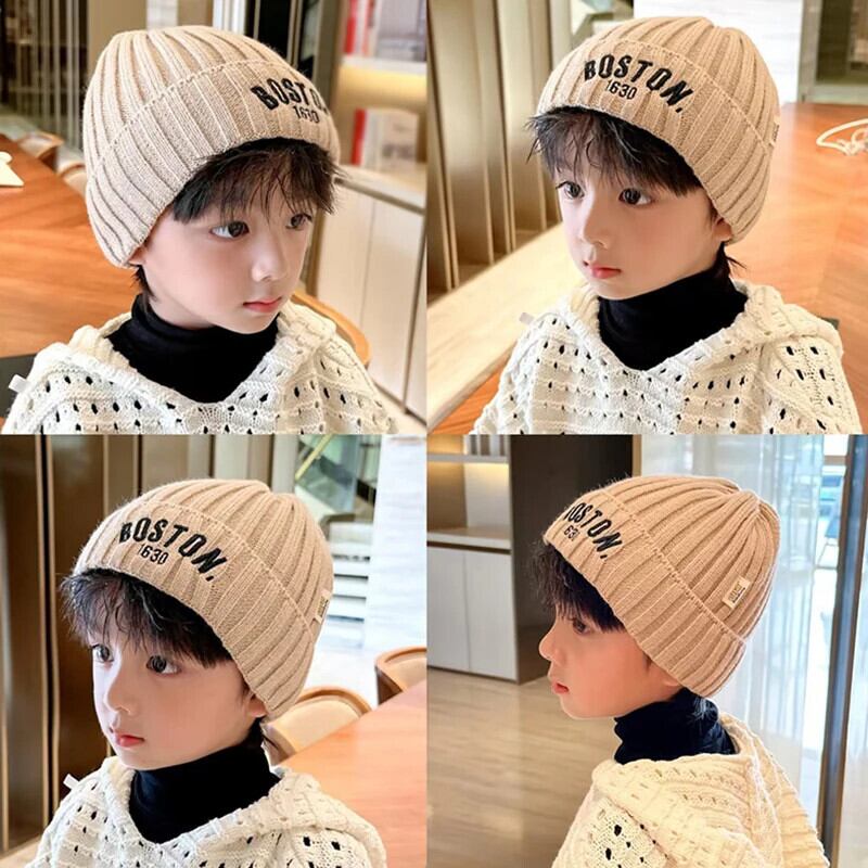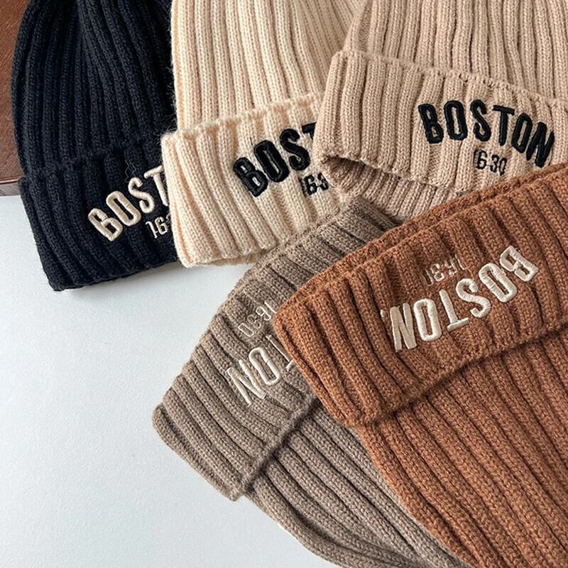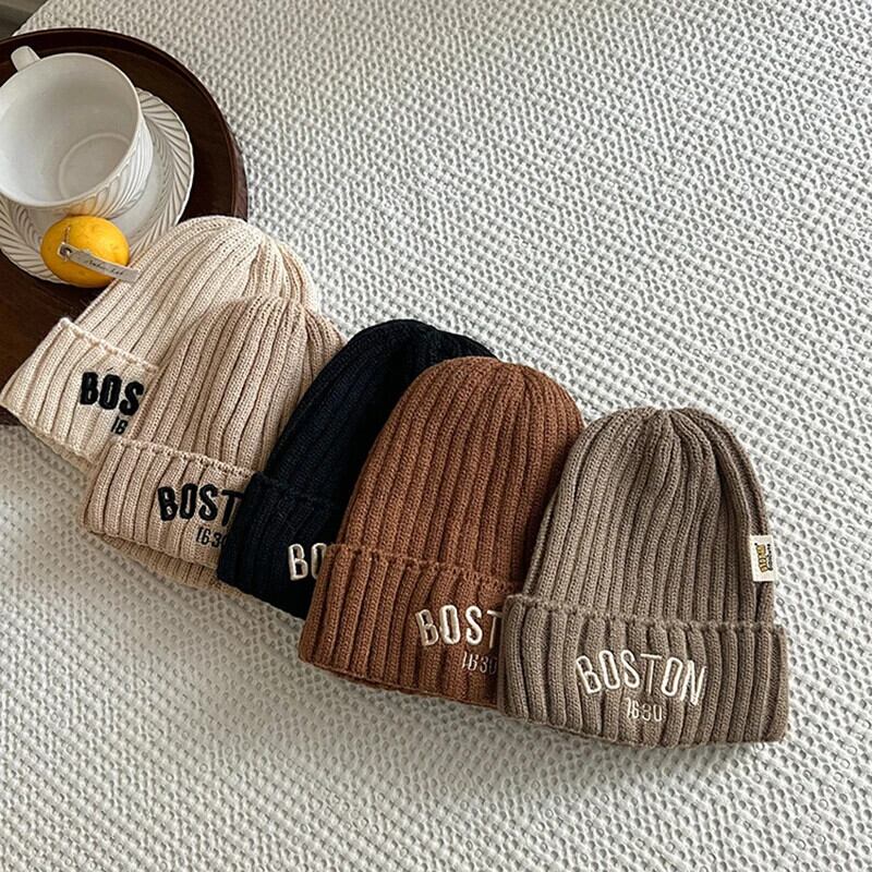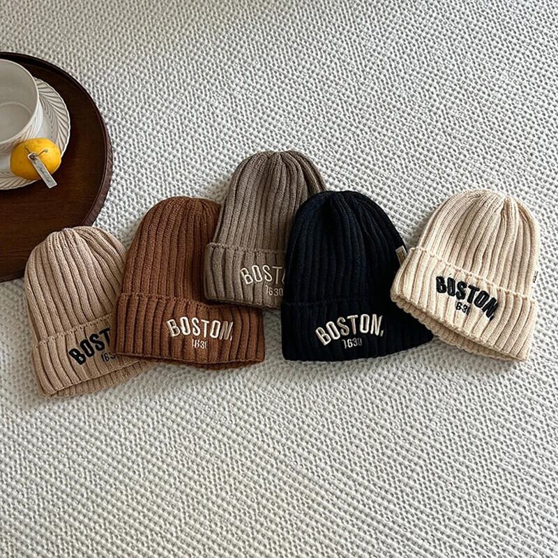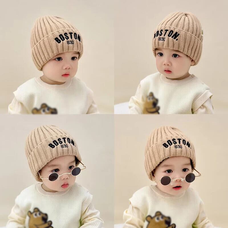 文字刺繍ソフト暖かいベビービーニーニット帽子幼児子供キッズボーイズガールズ秋冬キャップ レッド オータム 秋物 ウィンター 冬物