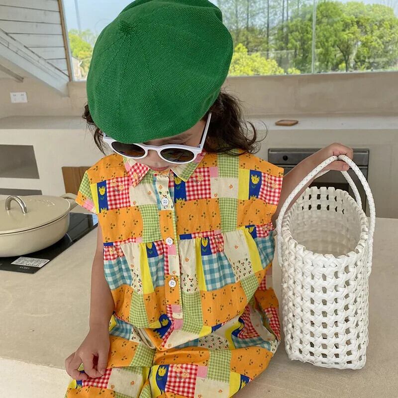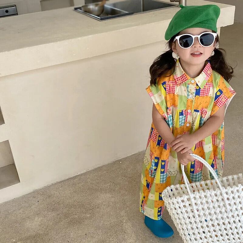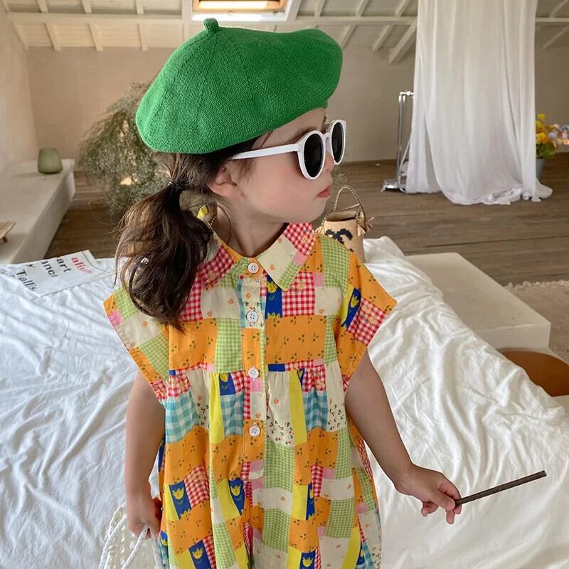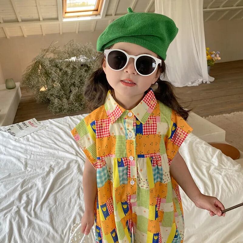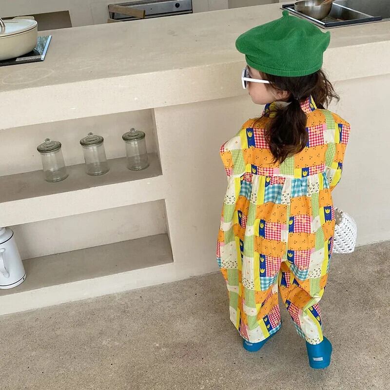3-8years 子供女子夏ジャンプスーツ子供シャツ襟半袖ロンパースプリントジャンプスーツ & ロンパース & ロンパース & ロンパース & ロンパース & ジャンプスーツ & ロンパース ショート ロング ハーフスリーブ サマー 夏物 キッズ