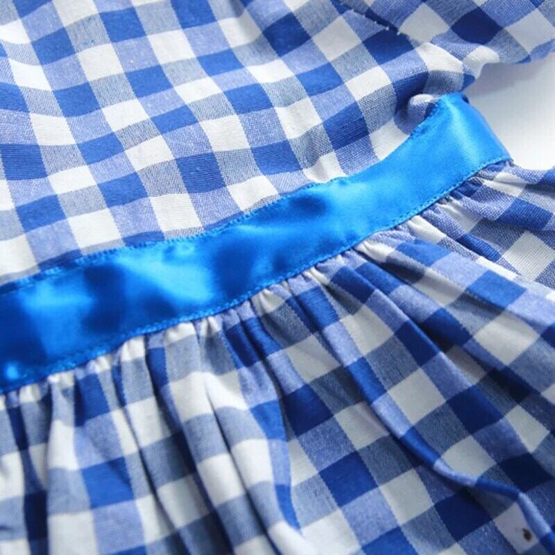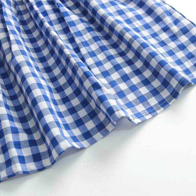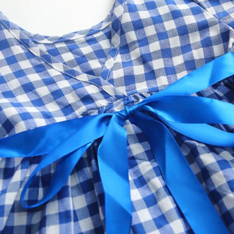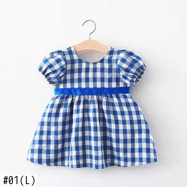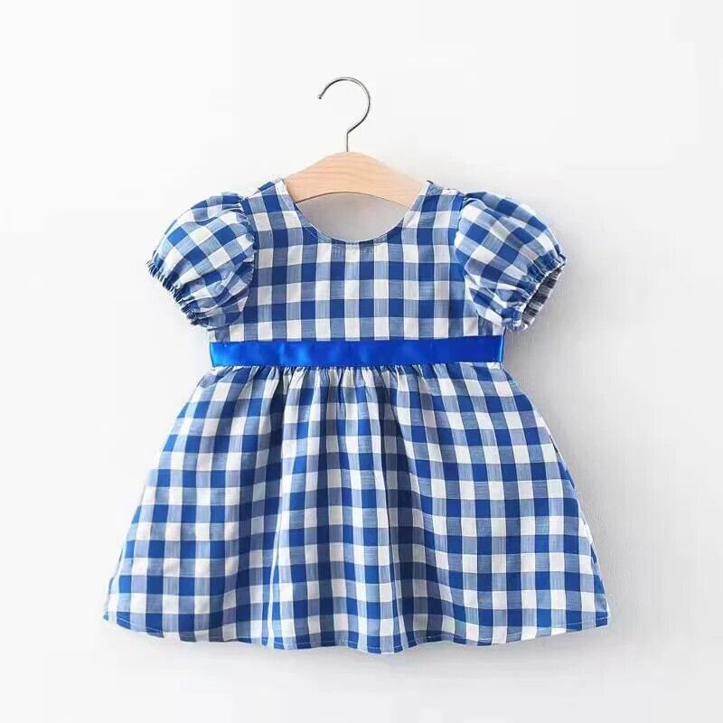 子供女赤ちゃんチェック柄ドレス夏半袖 2-9 歳子供ラウンドネックネクタイロープドレス ショート ハーフスリーブ サマー 夏物 キッズ Oネック