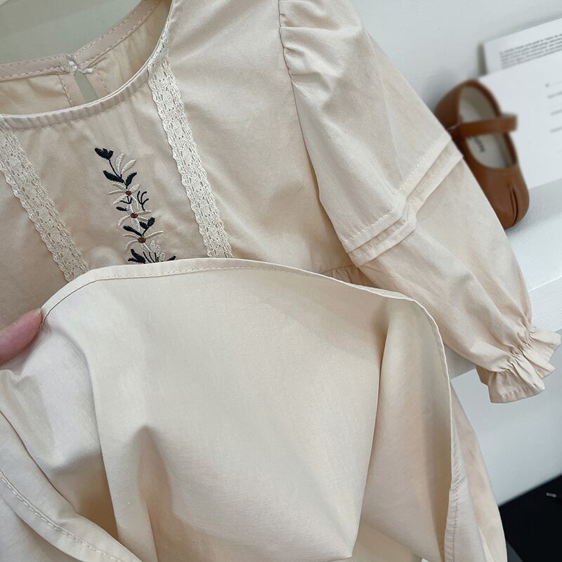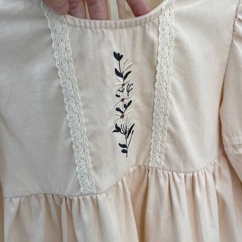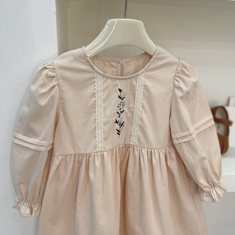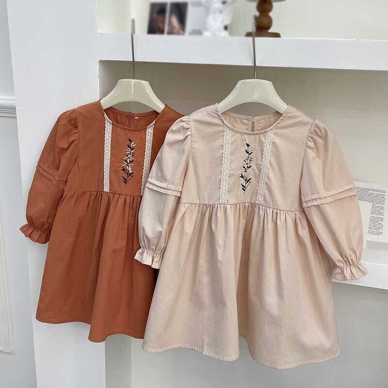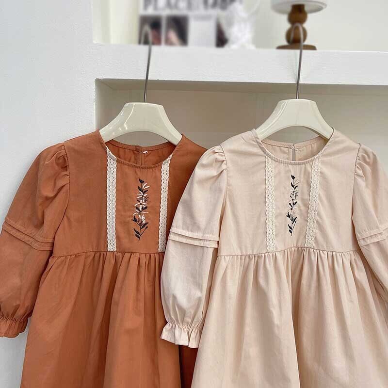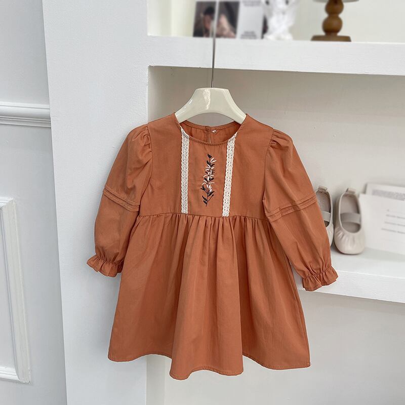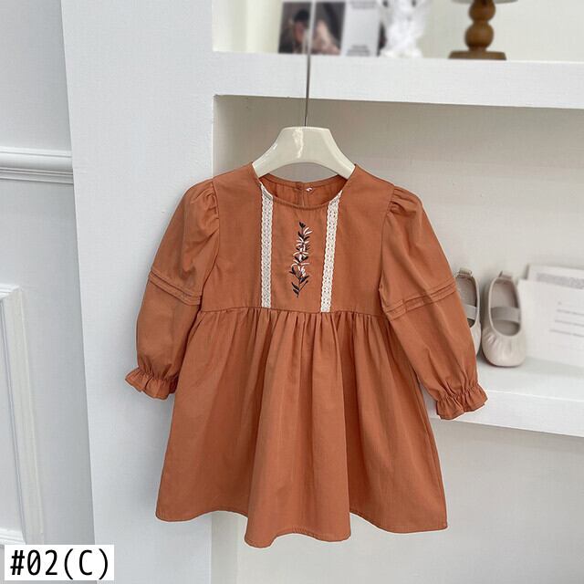 子供女赤ちゃん刺繍ドレス春秋甘いスタイル長袖キッズガールドレス ロング レッド 大人ガーリー スウィート キュート カジュアル スプリング 春物 オータム 秋物