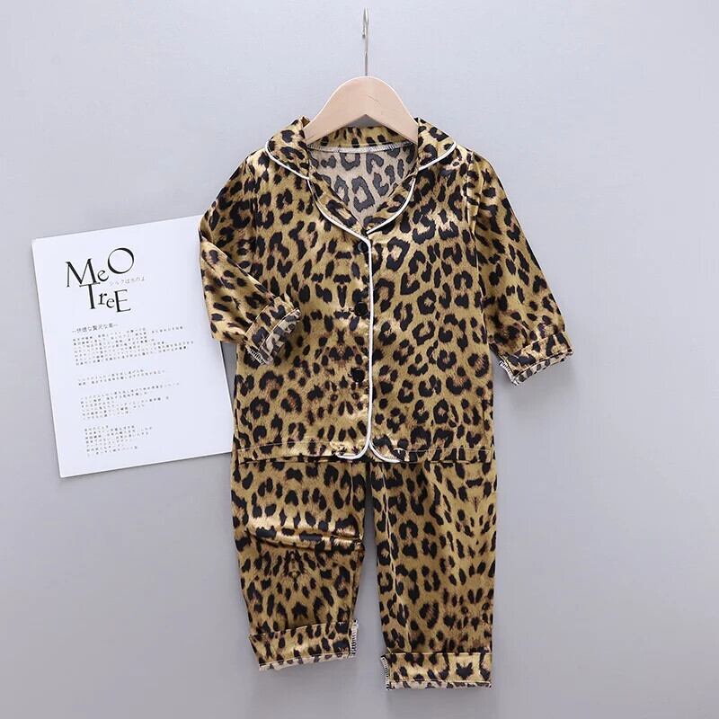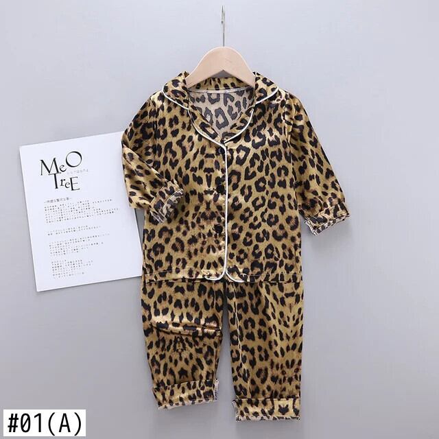 ベビーパジャマキッズガールズボーイズパジャマヒョウ長袖パジャマトップス + 睡眠パンツセット寝間着子供ナイトシャツ ロング