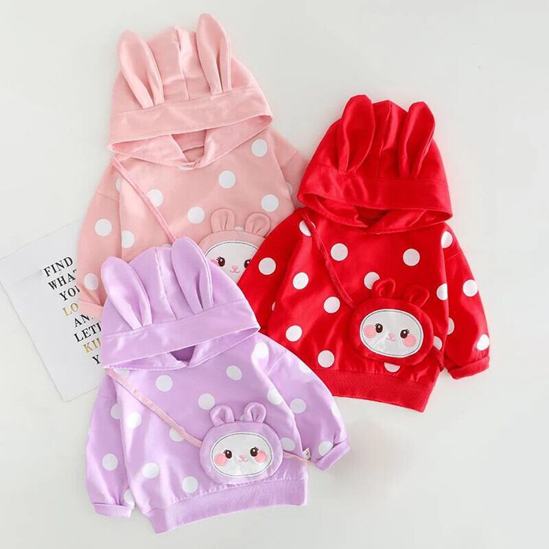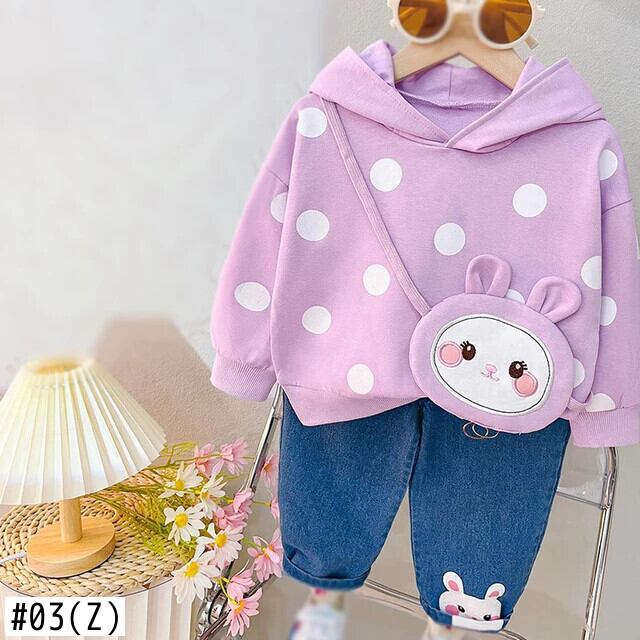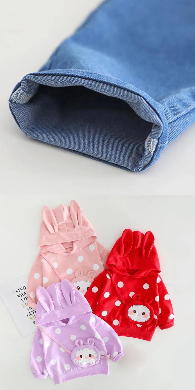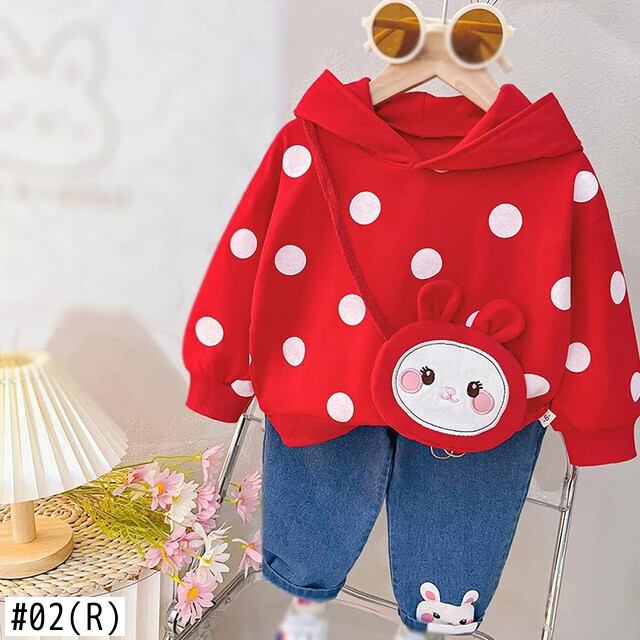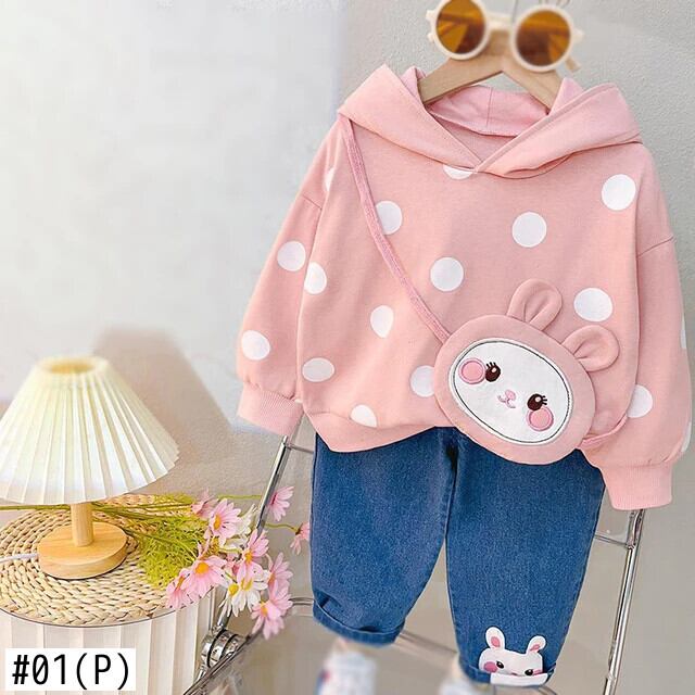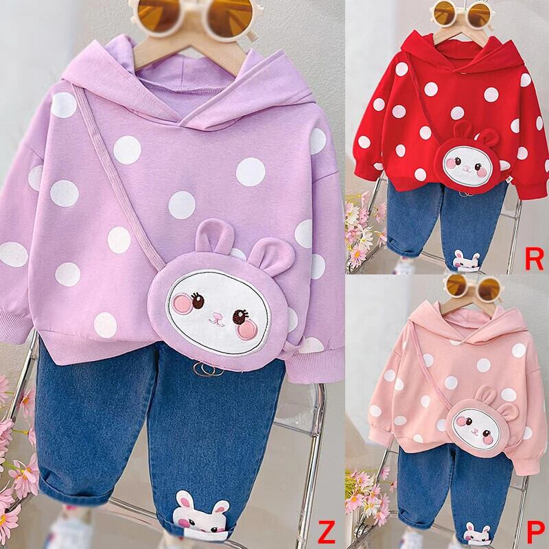 キッズベビー女子水玉ウサギバッグパーカートレーナー&デニムパンツセット秋女赤ちゃん幼児2ピース衣装 オータム 秋物