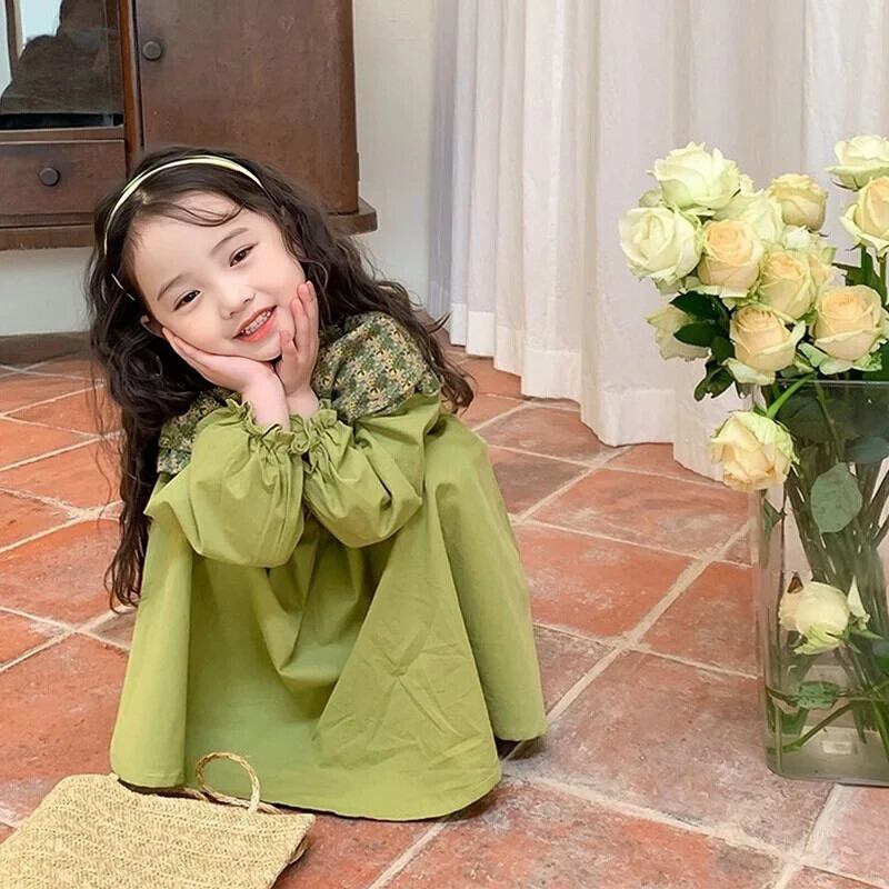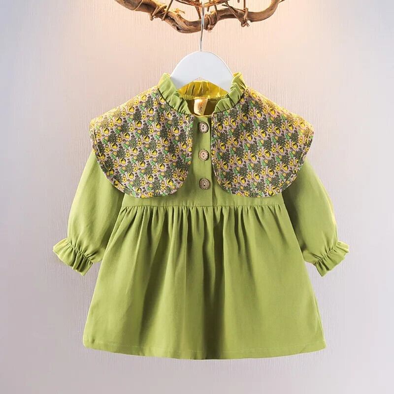 幼児女赤ちゃんドレス秋甘いスタイル長袖ドレス花柄 A ラインドレス子供 0-3Y ロング 大人ガーリー スウィート キュート カジュアル オータム 秋物 Aライン
