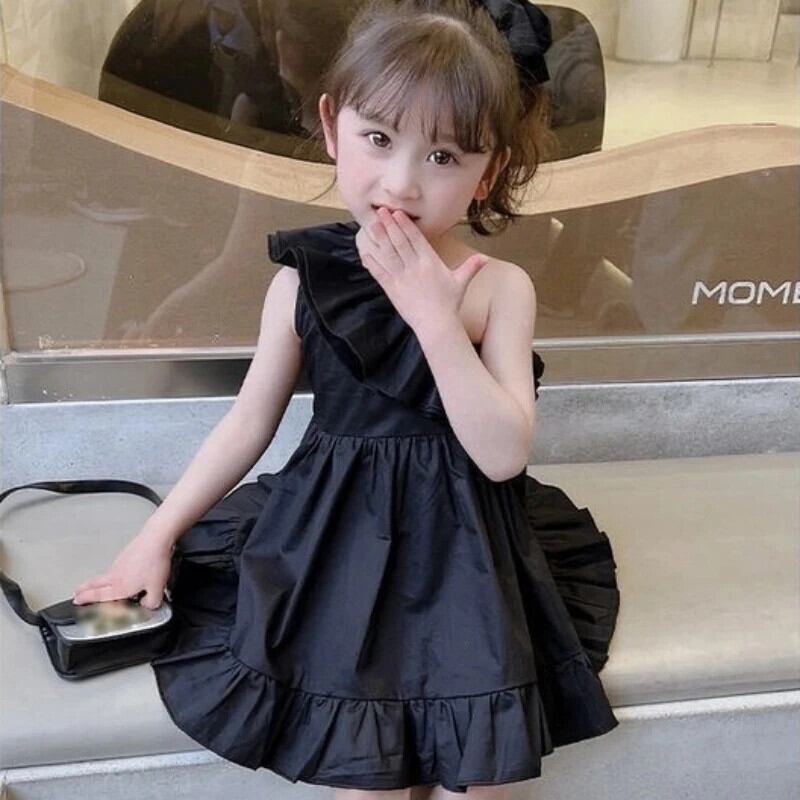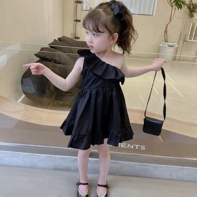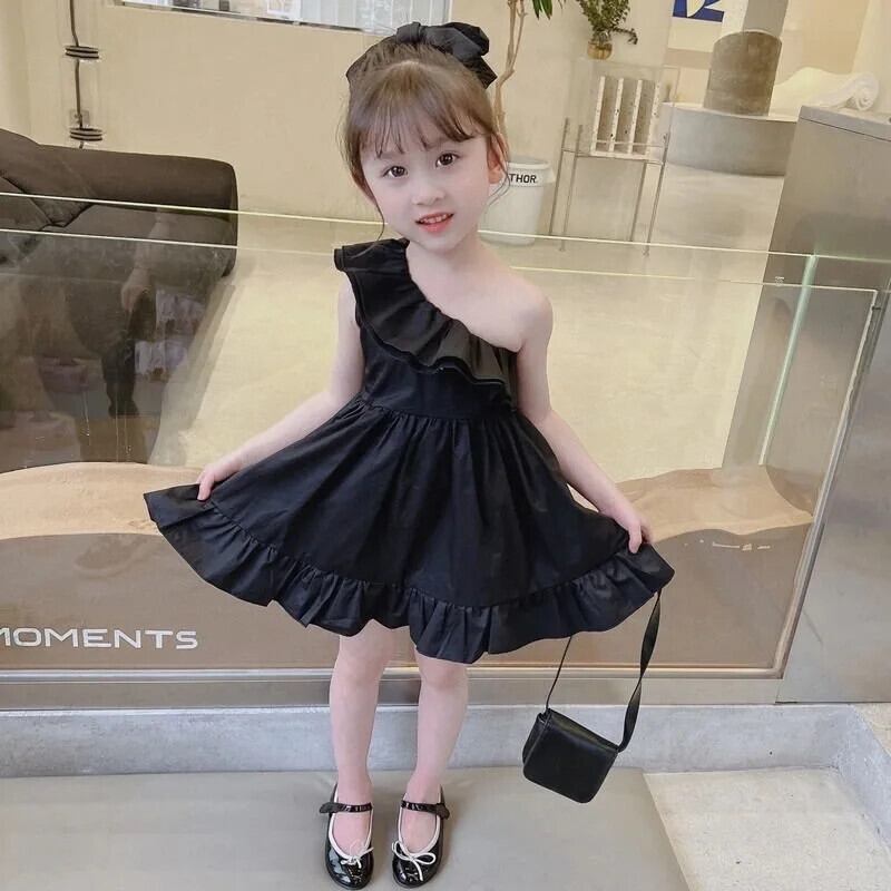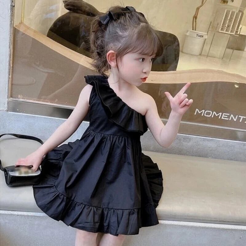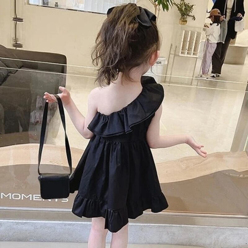 ガールドレスオフショルダーベビードレスクリックブラック誕生日ドレス幼児ベビー夏キッズガールズ サマー 夏物