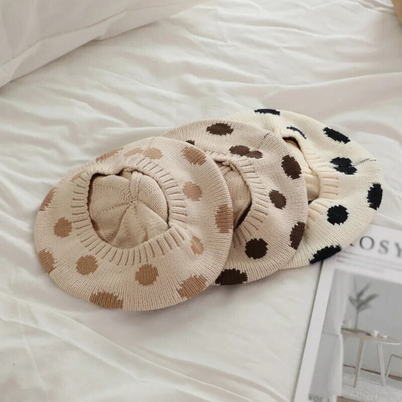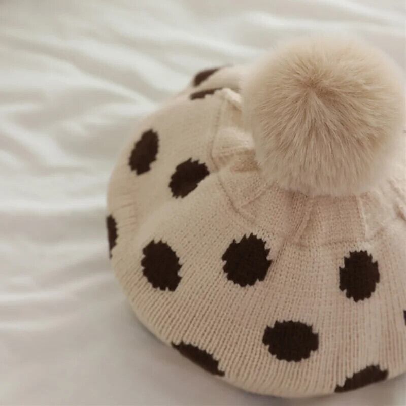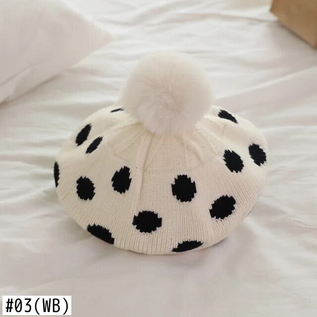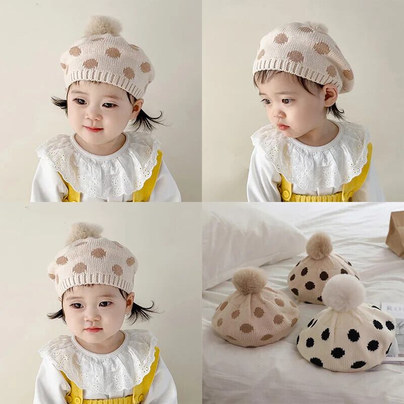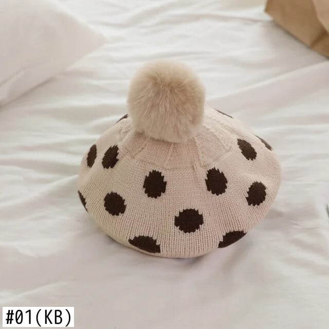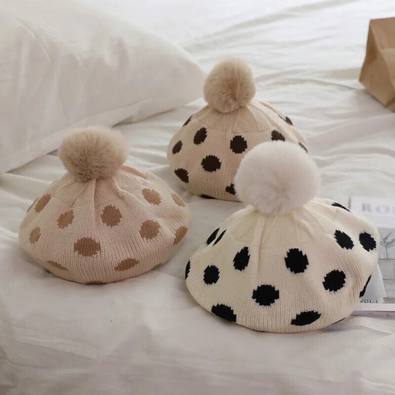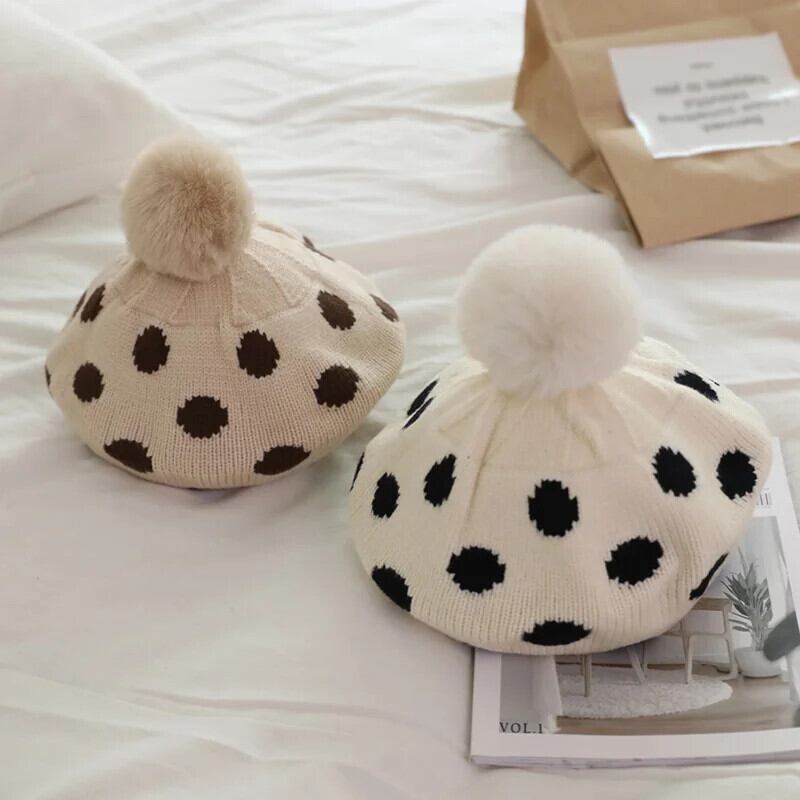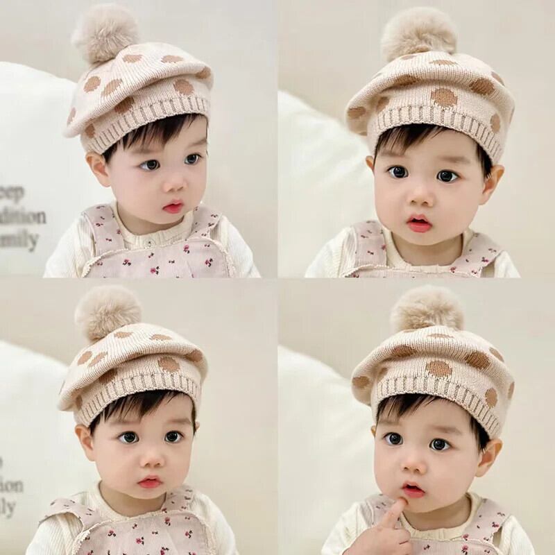 ぬいぐるみボールニットベレー帽子供ベビー帽子秋冬水玉アクセサリーニット画家帽子女子キッズボンネット オータム 秋物 ウィンター 冬物 ベレット ヘアアクセサリー
