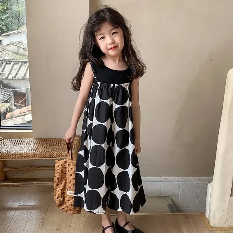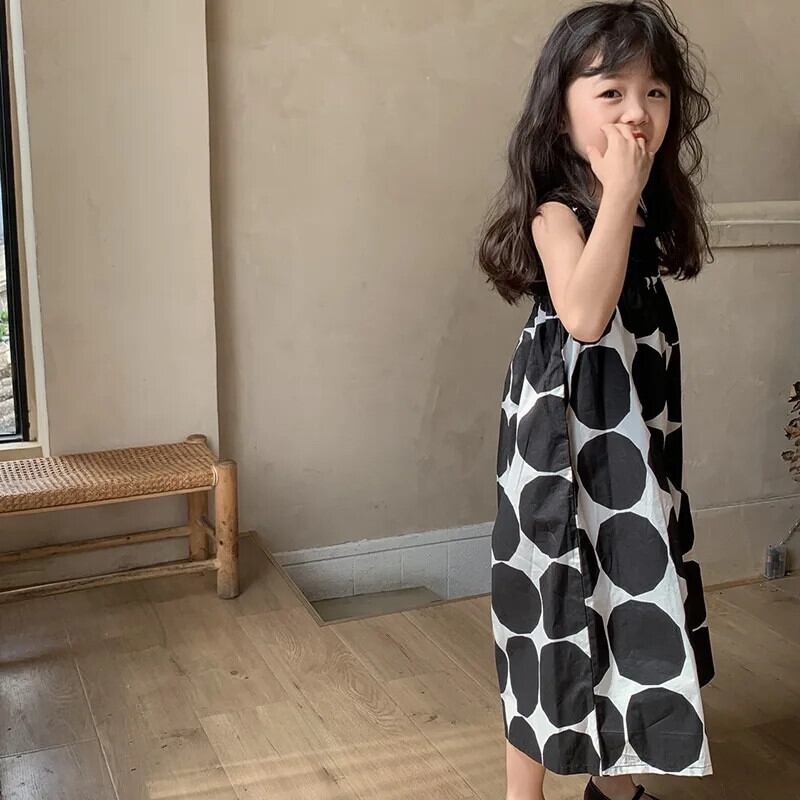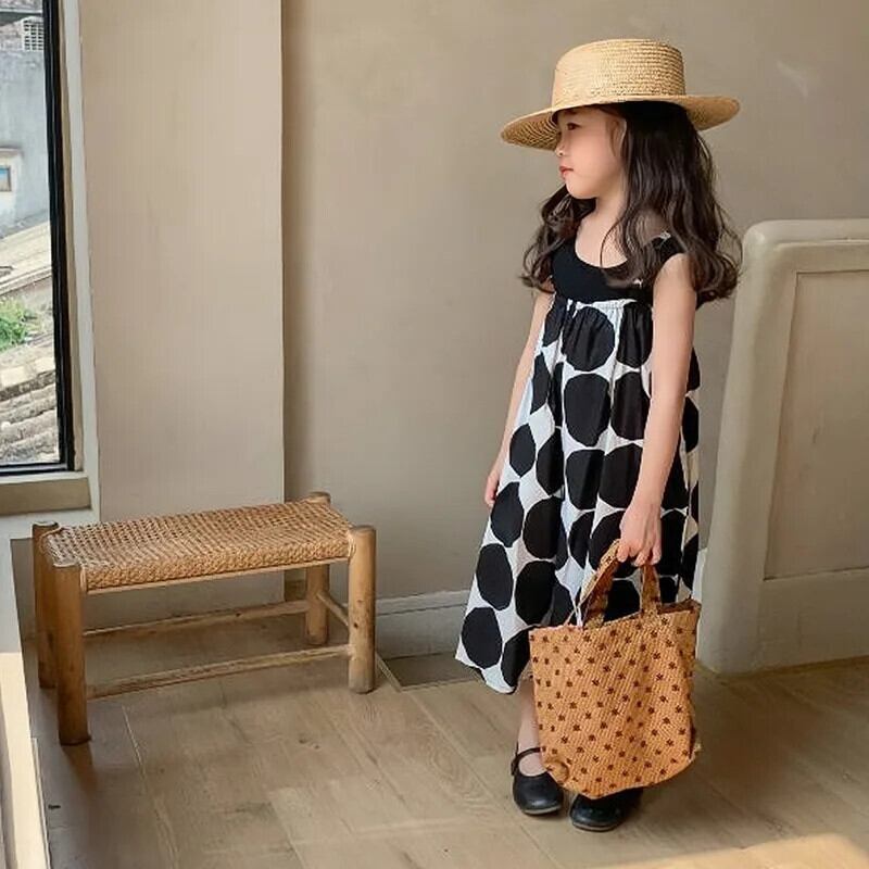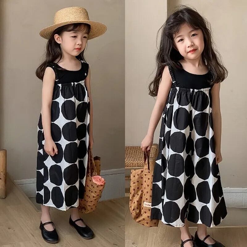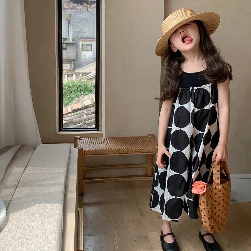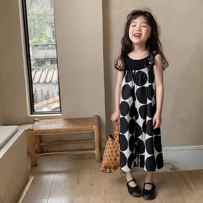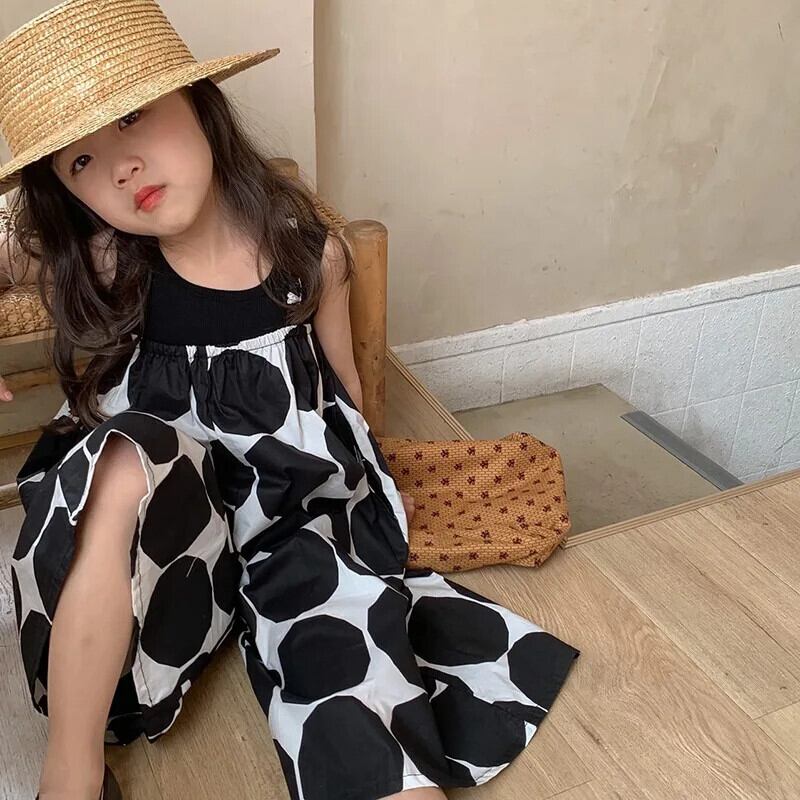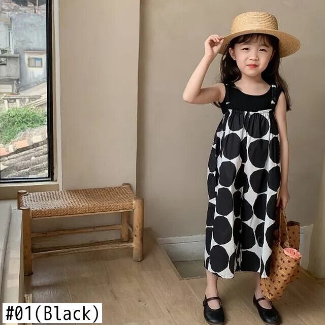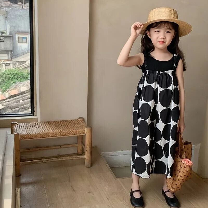 女子夏パンツビッグ水玉スリングジャンプスーツ女子ワイドレッグパンツベビー子供子供ジャンプスーツ サマー 夏物 キッズ ワイドパンツ