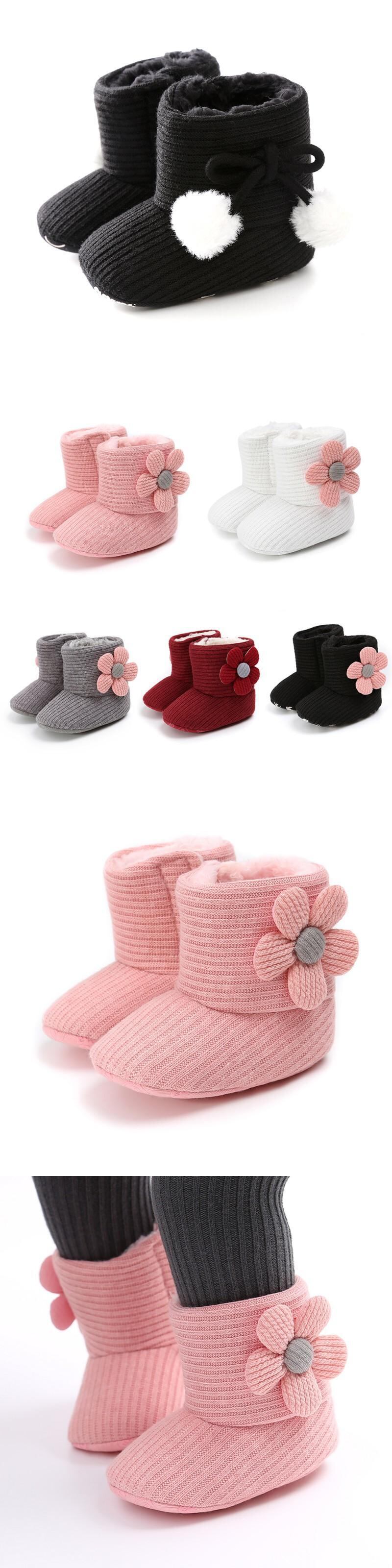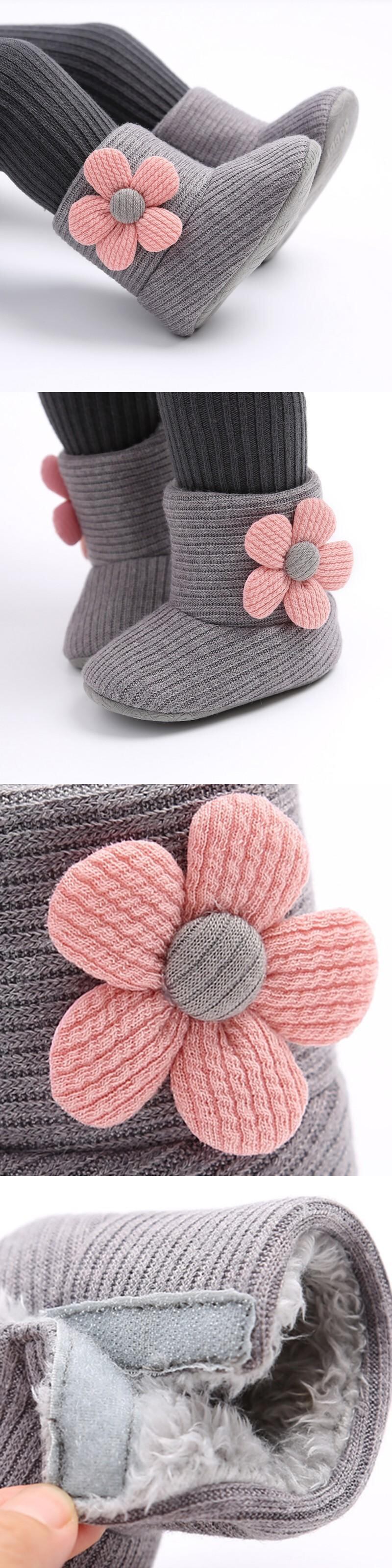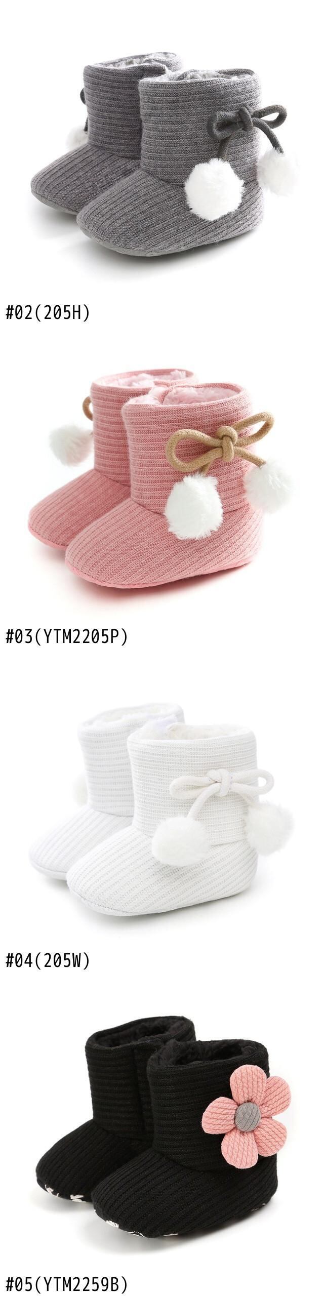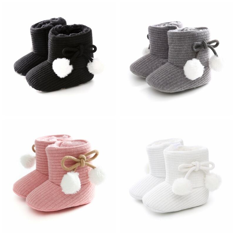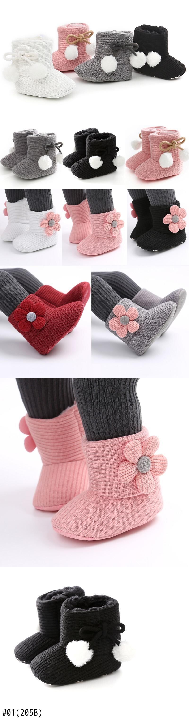冬ベビーブーツ女赤ちゃん男子靴毛皮ニットファジーボールスノーブーツソリッドフラワーウォーカー生まれ幼児ブーツ シューズ ウィンター 冬物 ソリッドカラー フラワーデザイン