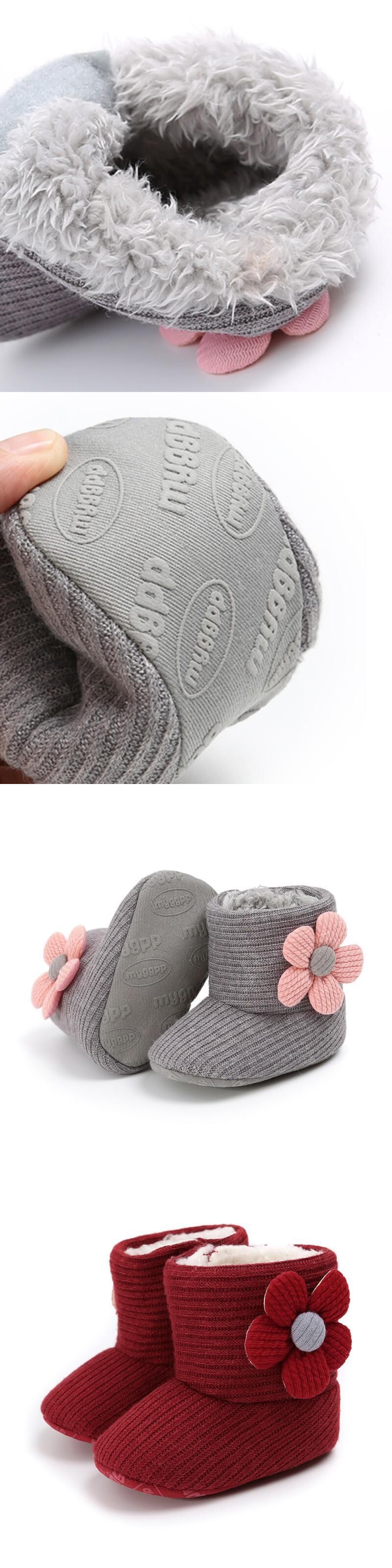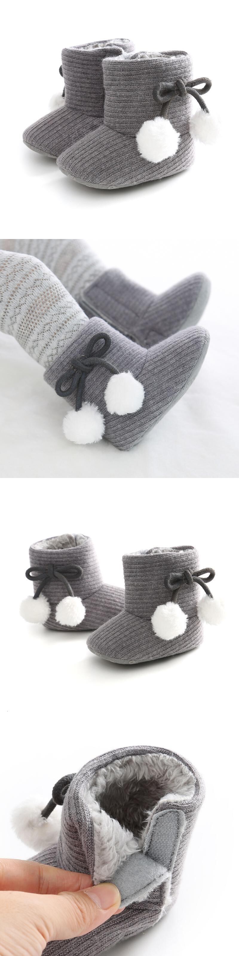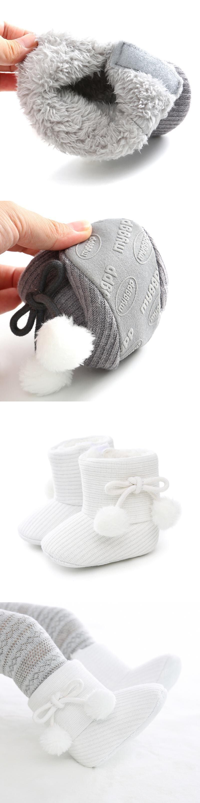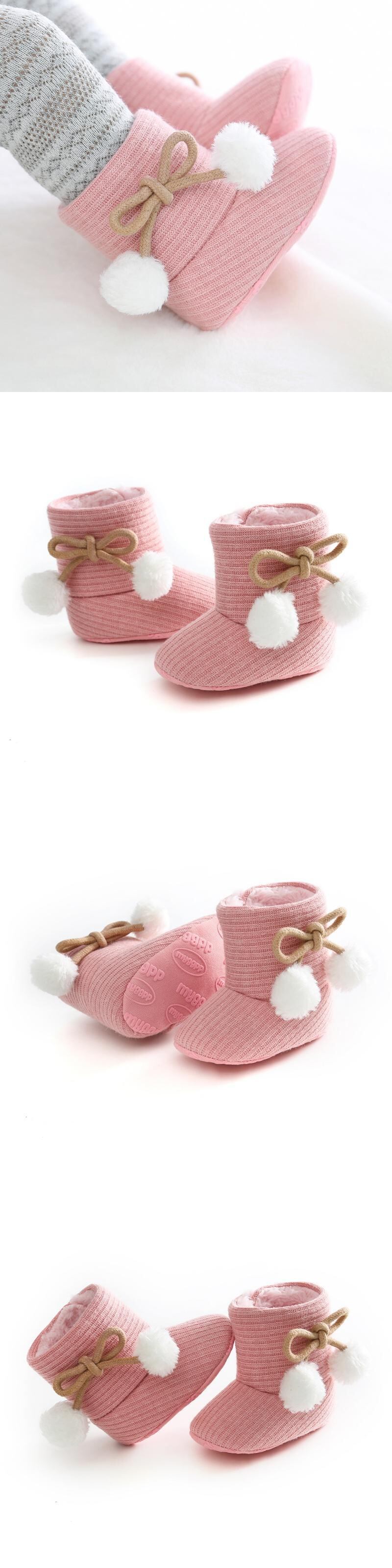 冬ベビーブーツ女赤ちゃん男子靴毛皮ニットファジーボールスノーブーツソリッドフラワーウォーカー生まれ幼児ブーツ シューズ ウィンター 冬物 ソリッドカラー フラワーデザイン