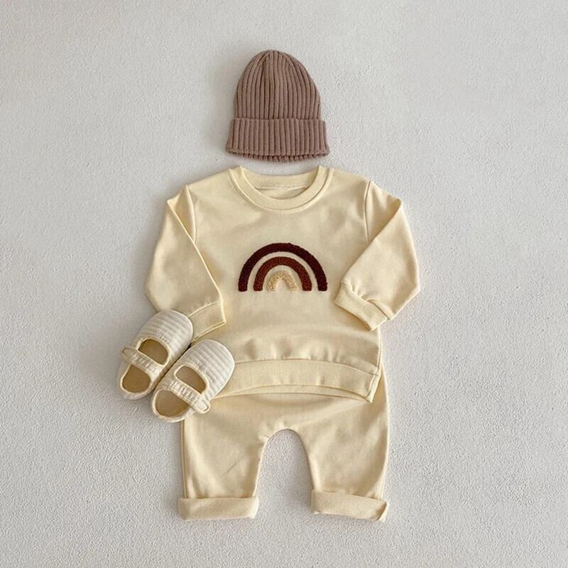 レインボープリントスウェットセット幼児長袖トップス+ズボン赤ちゃん男子春秋ジャージ ロング シャツ スプリング 春物