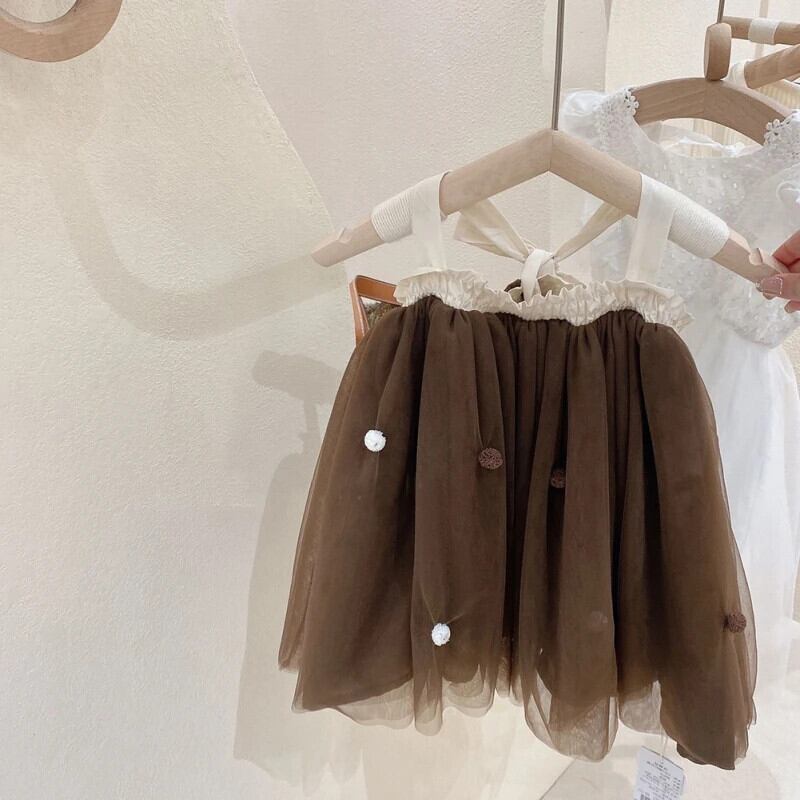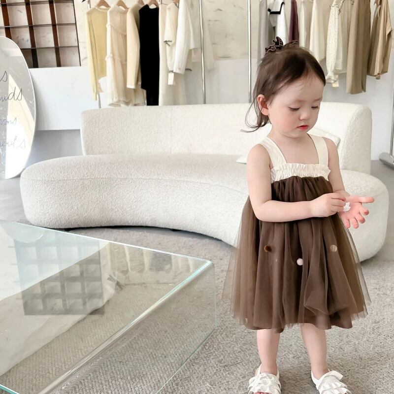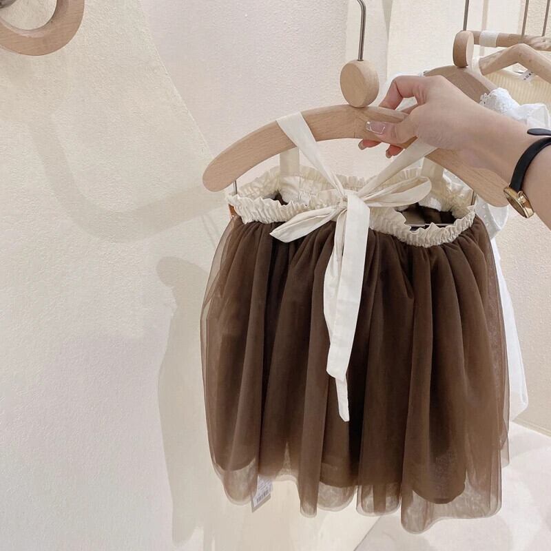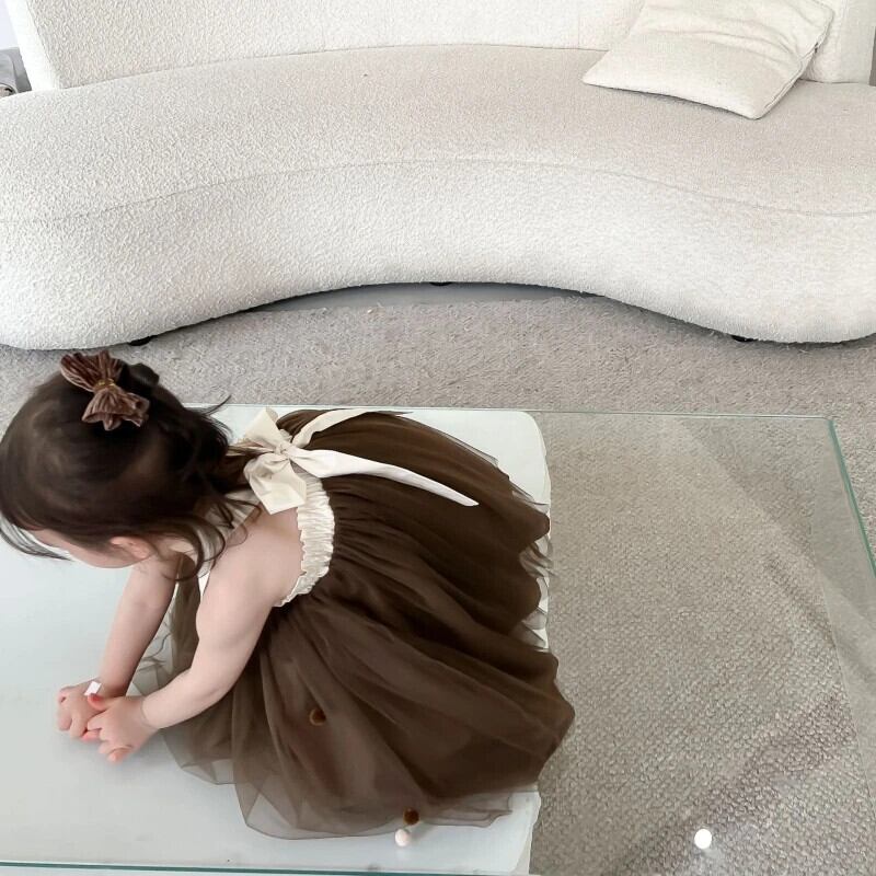 幼児女赤ちゃんメッシュドレスベビー蝶ネクタイ背中開いた子供夏ノースリーブストラップドレス誕生日 リボン サマー 夏物 キッズ