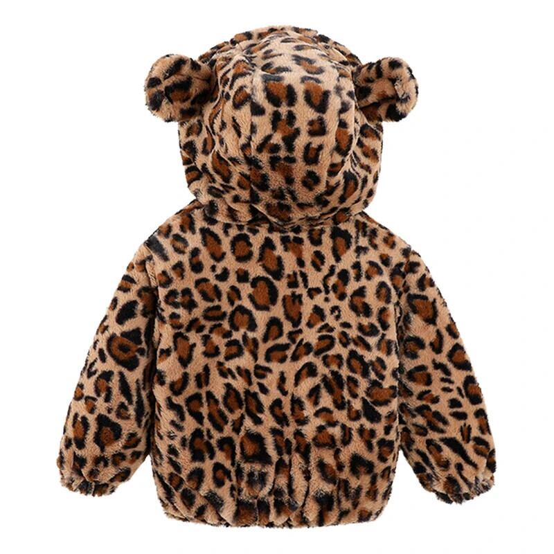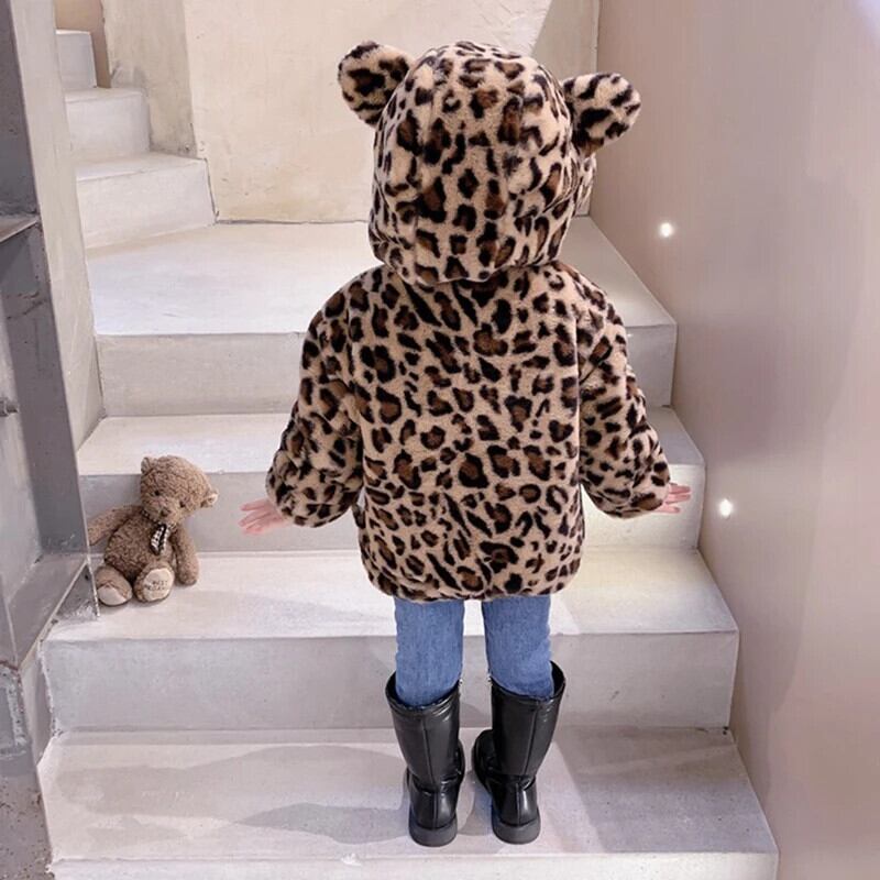 子供女赤ちゃん冬ヒョウ柄コートキッズボーイラムウール暖かいパーカー長袖フード付き ロング ウィンター 冬物
