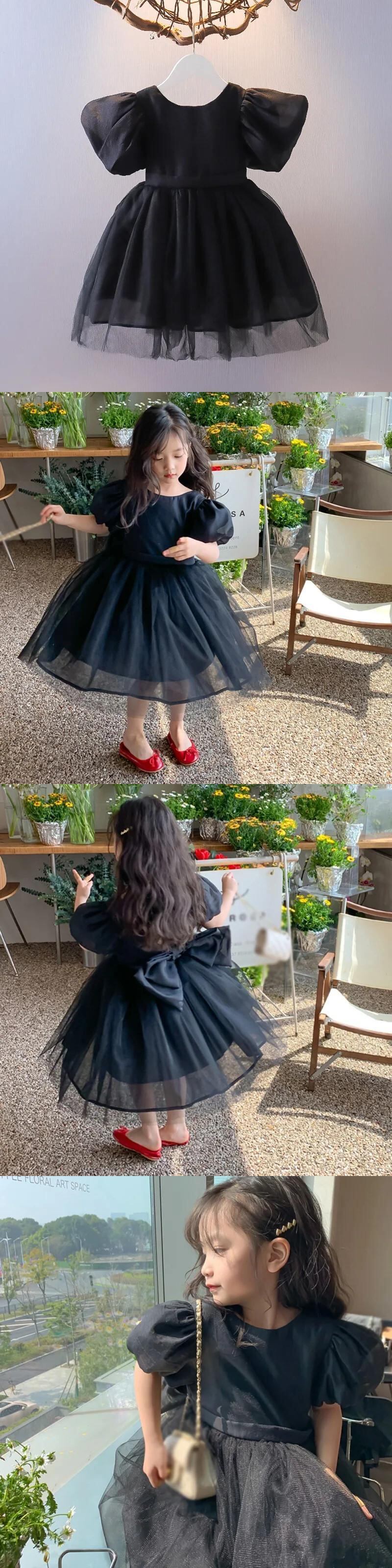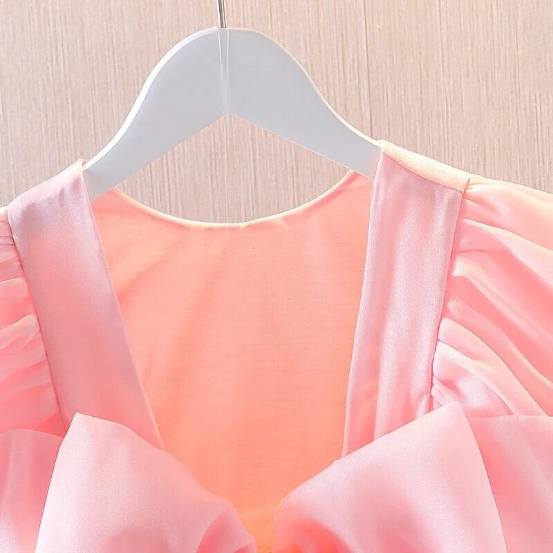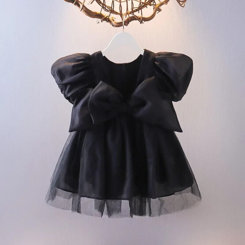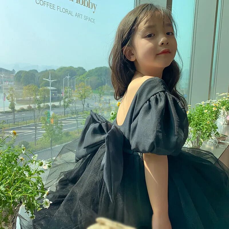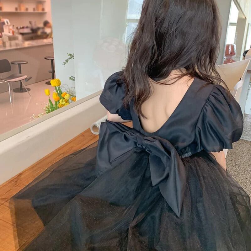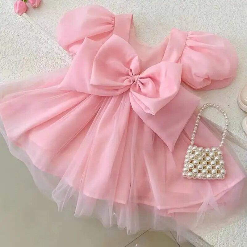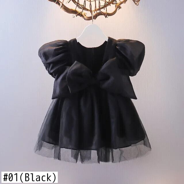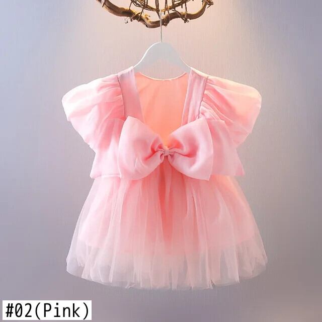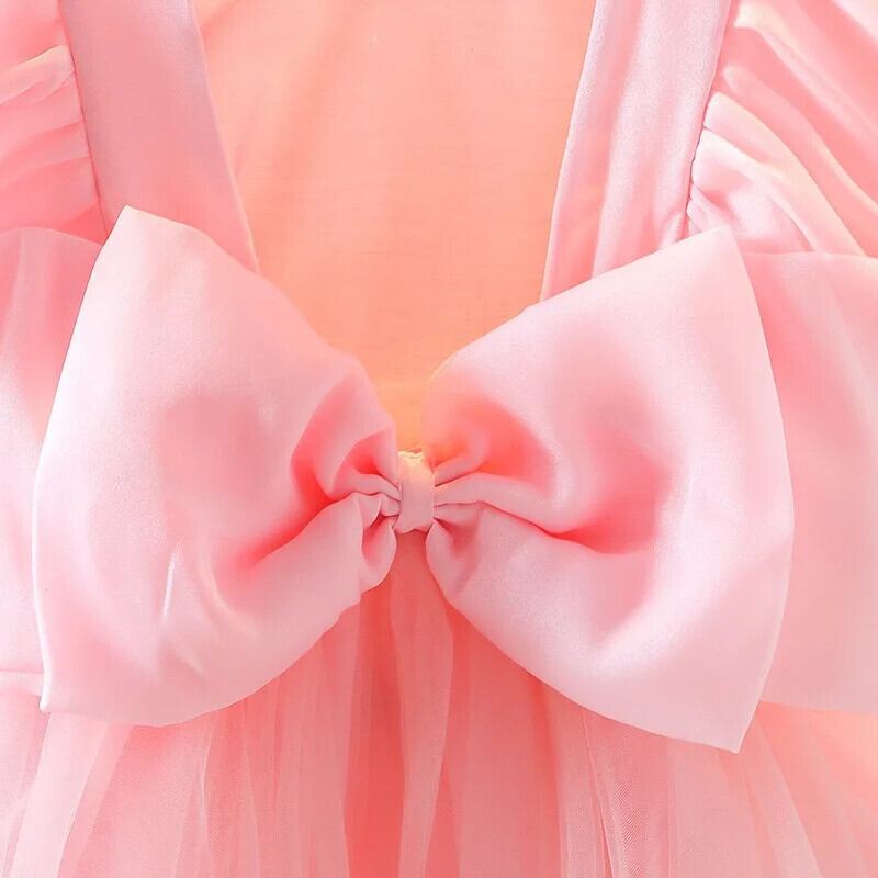 女子ビッグボウメッシュステッチブロケード背中開いたドレス幼児キッズベビーフリルチュチュ誕生日ウェディングパーティードレス リボン ラッフル パニエ ペチコート
