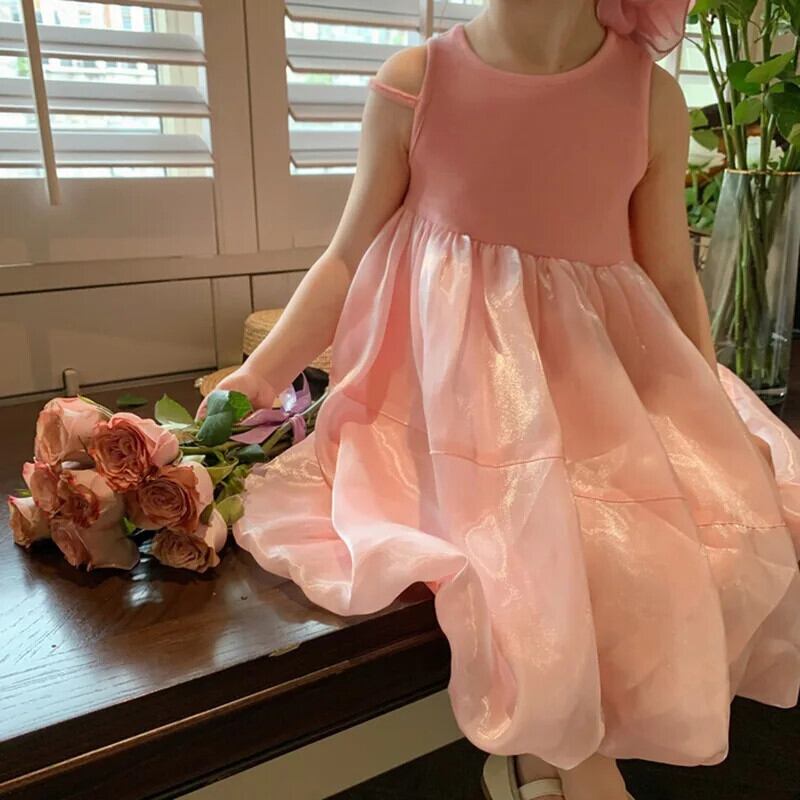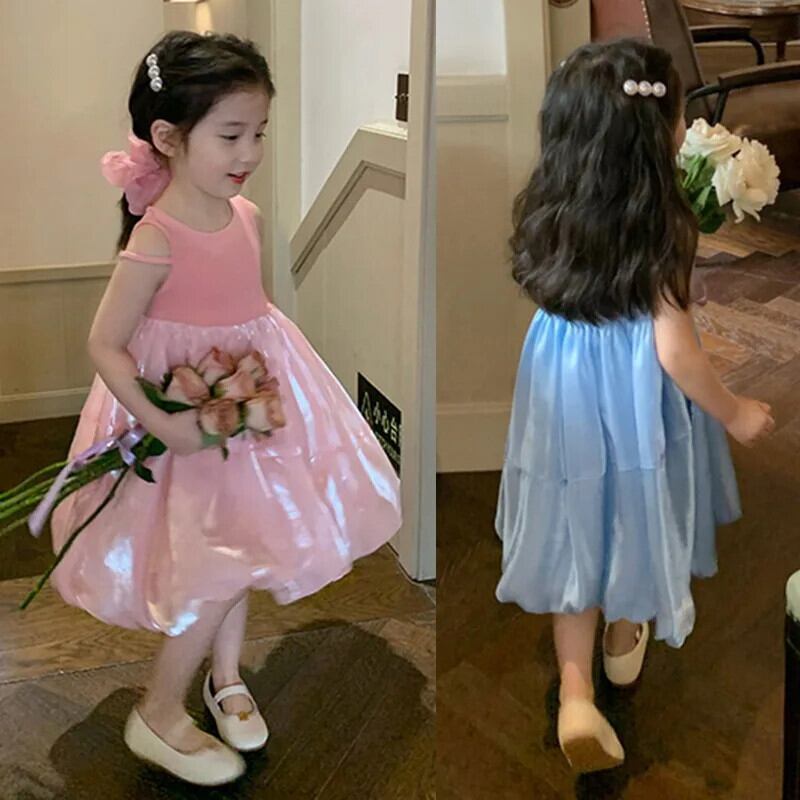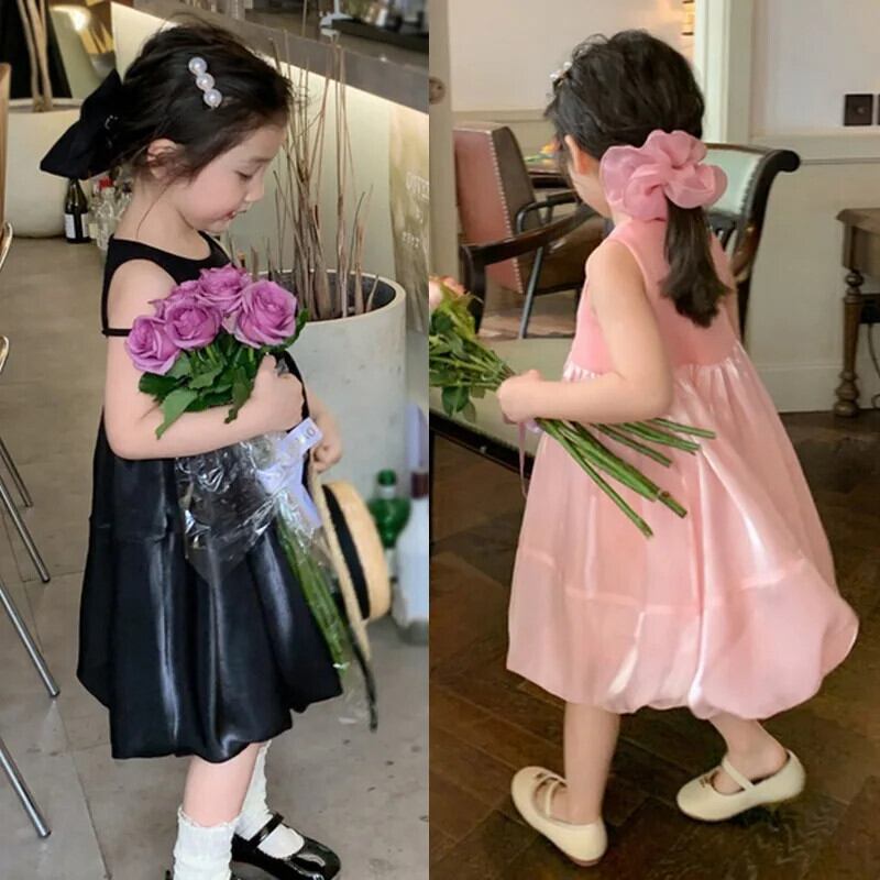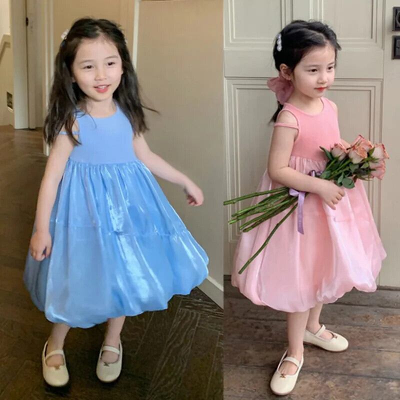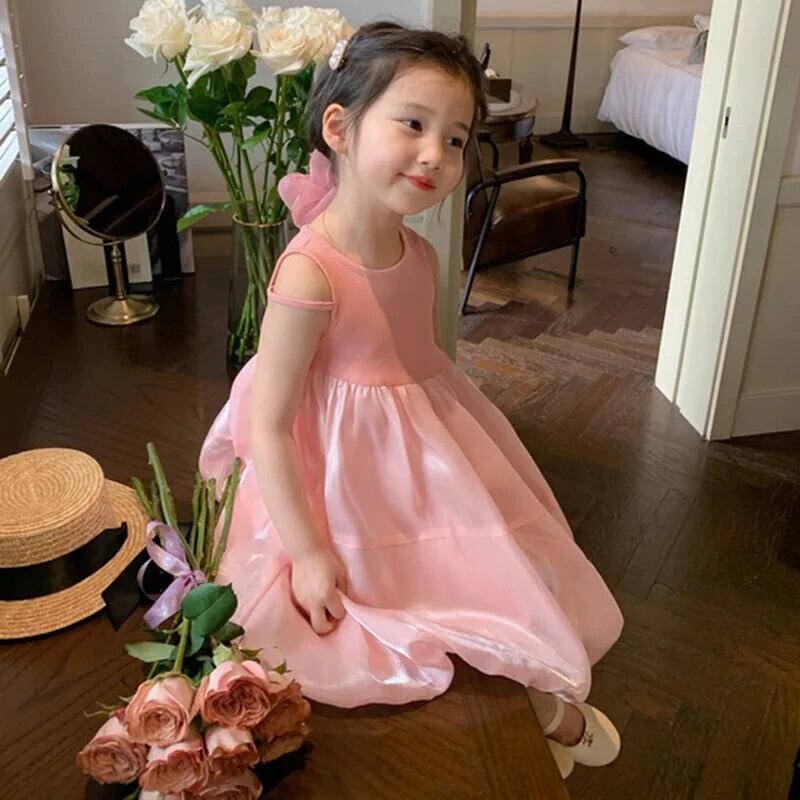 夏女赤ちゃんドレスノースリーブ無地ブロケードドレス子供 O ネック A ラインドレスドレスガール サマー 夏物 キッズ Oネック Aライン ソリッドカラー
