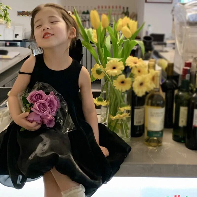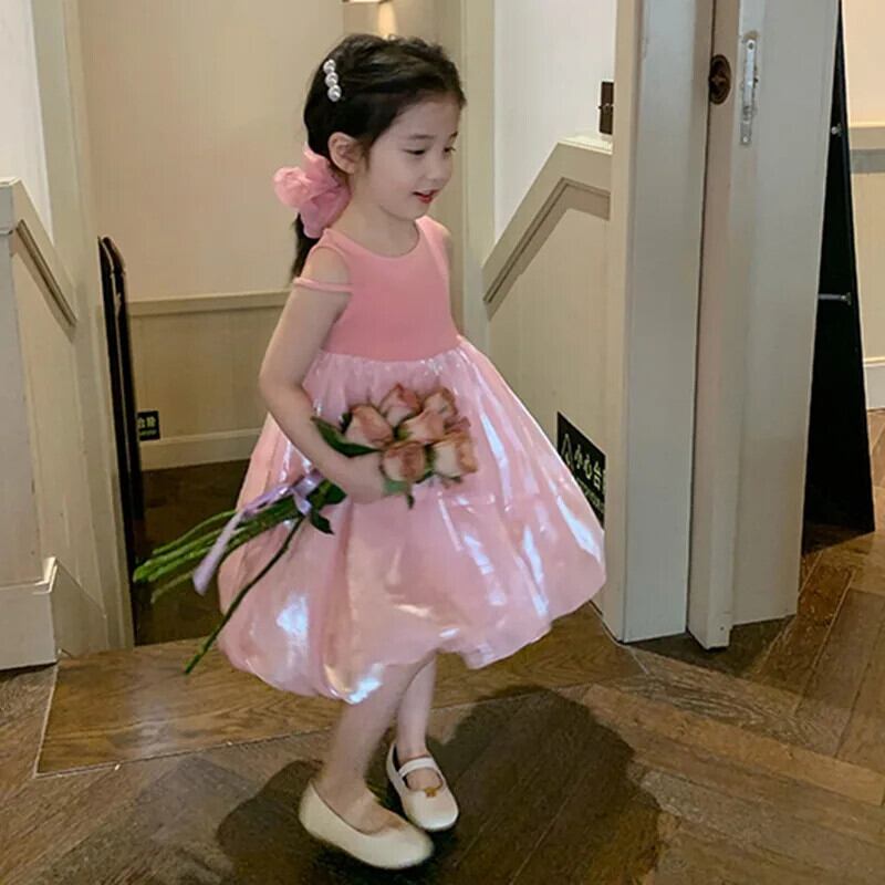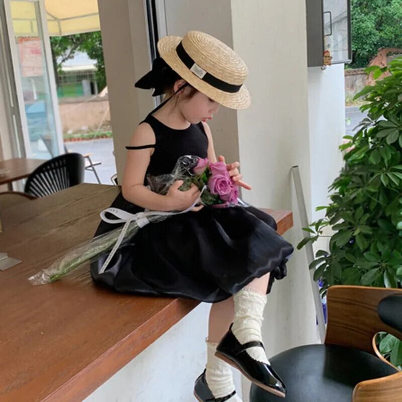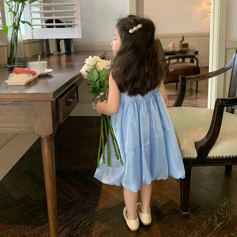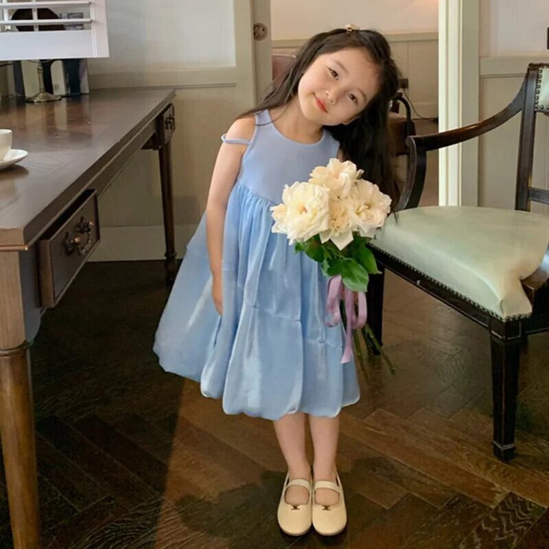 夏女赤ちゃんドレスノースリーブ無地ブロケードドレス子供 O ネック A ラインドレスドレスガール サマー 夏物 キッズ Oネック Aライン ソリッドカラー