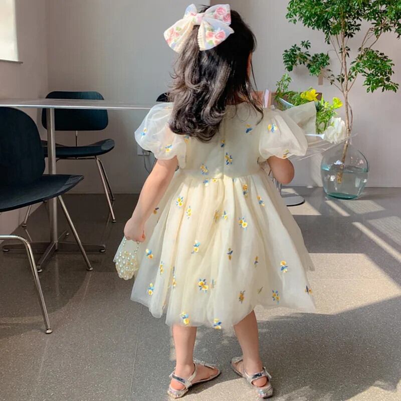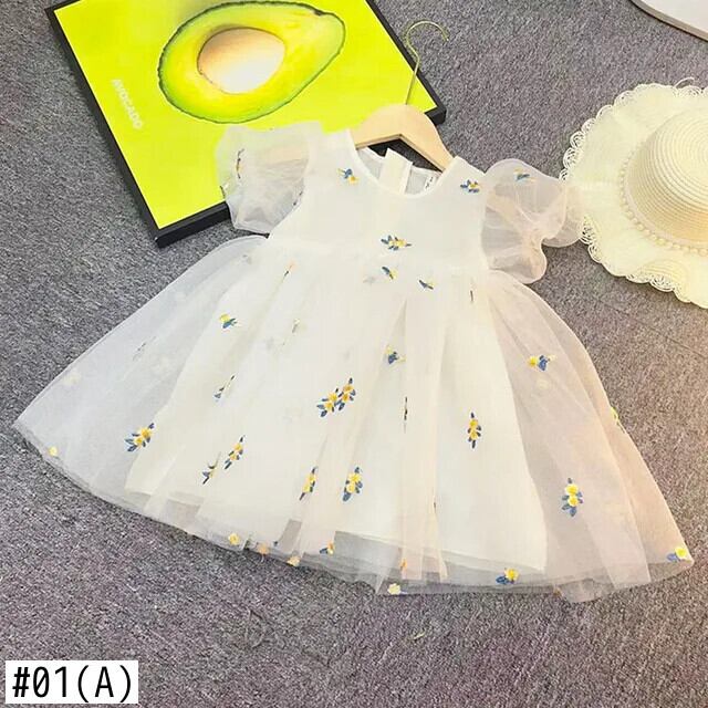 子供女子サマードレス子供花誕生日パーティードレスメッシュチュチュ結婚式子供ドレス 夏物 キッズ 花柄 パニエ ペチコート
