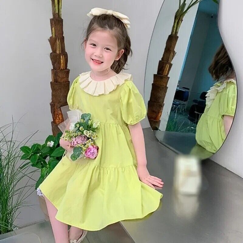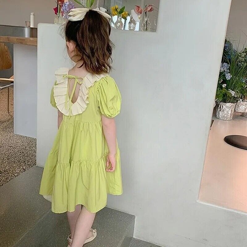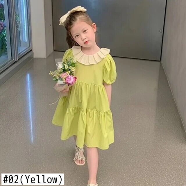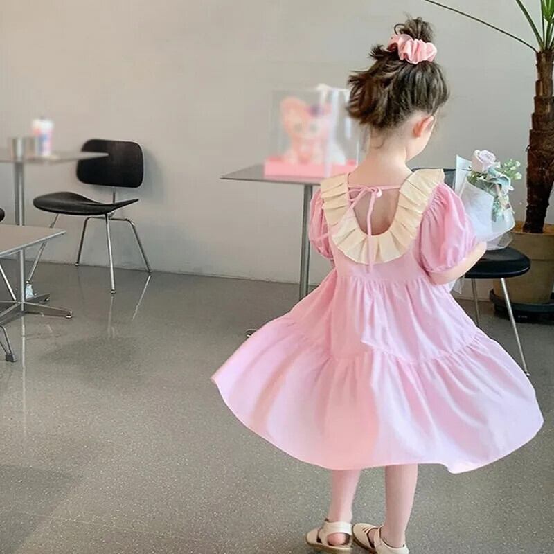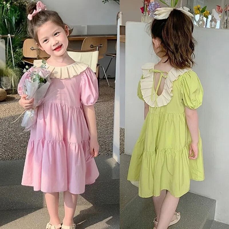 バージョン夏子供ベビー甘いレース襟ホルターレースアップドレス子供パフスリーブふくらんプリンセスドレス 大人ガーリー スウィート キュート カジュアル サマー 夏物 キッズ