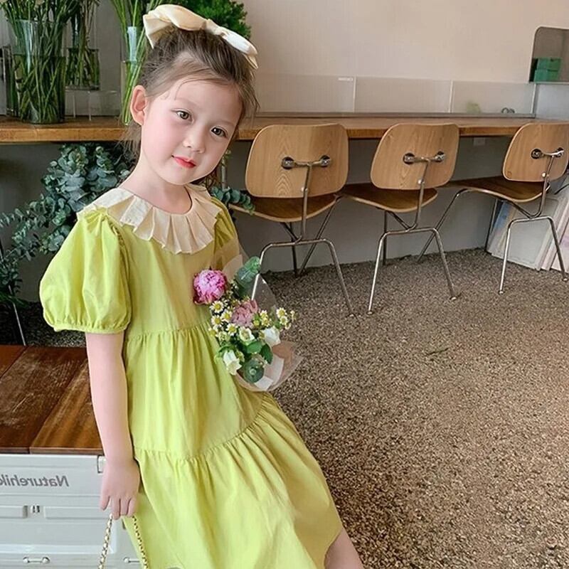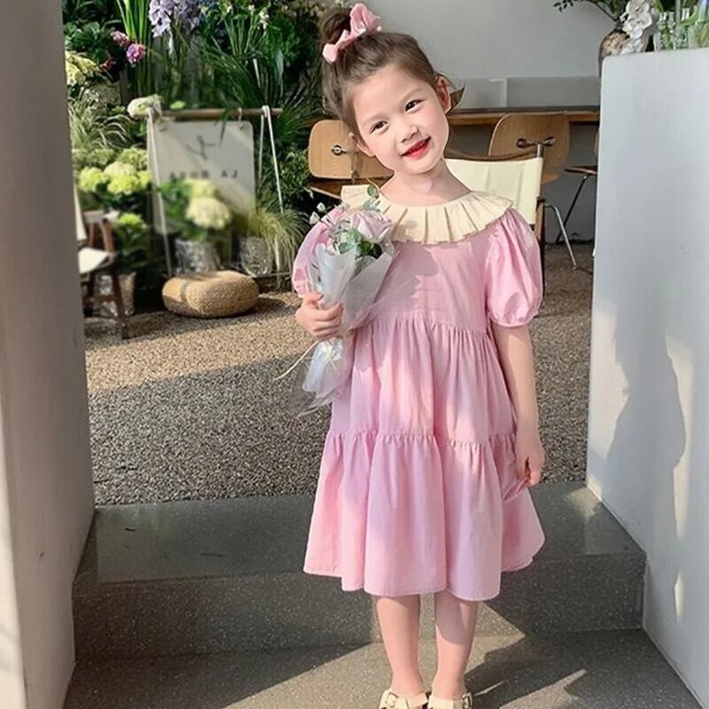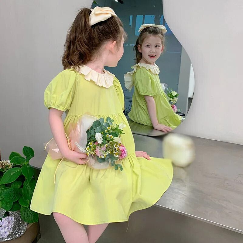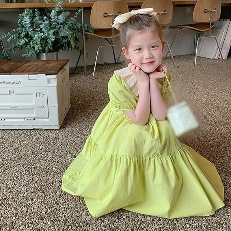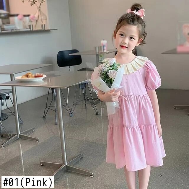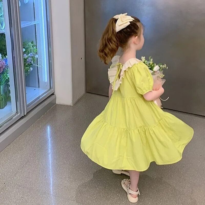 バージョン夏子供ベビー甘いレース襟ホルターレースアップドレス子供パフスリーブふくらんプリンセスドレス 大人ガーリー スウィート キュート カジュアル サマー 夏物 キッズ