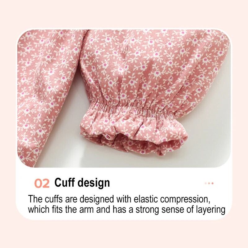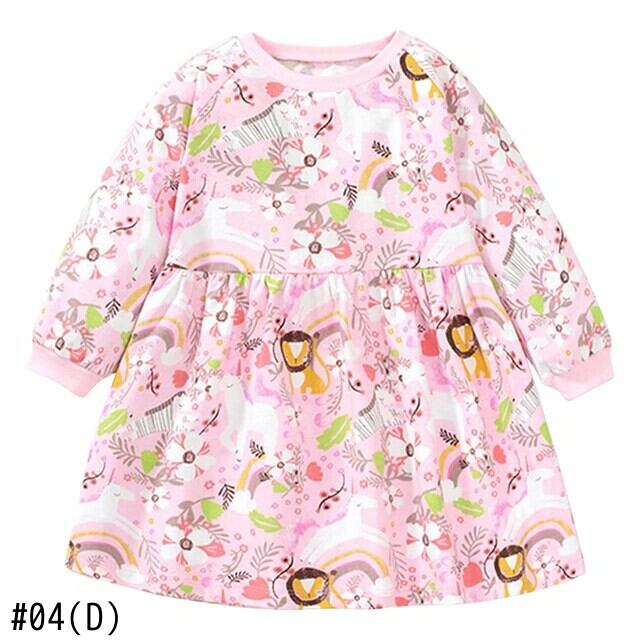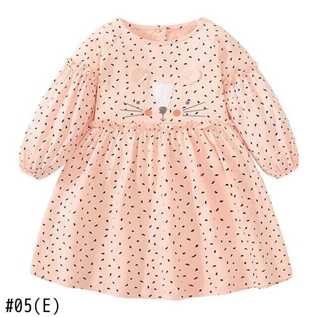 秋春ラウンドネックプリントドレス少女長袖かわいいルーズ膝丈ドレス女子 ロング 大人ガーリー スウィート キュート カジュアル スプリング 春物 オータム 秋物 Oネック