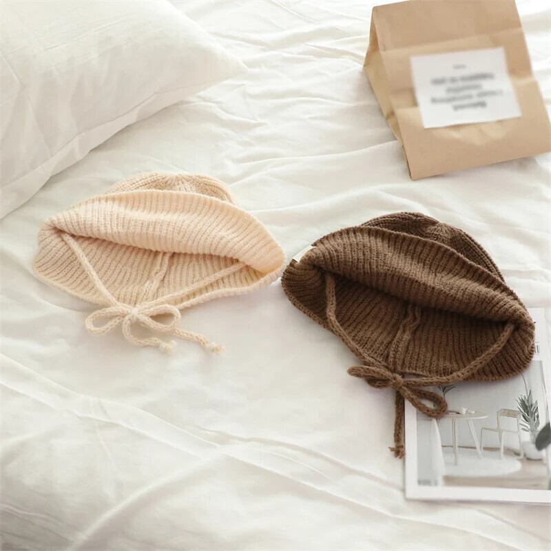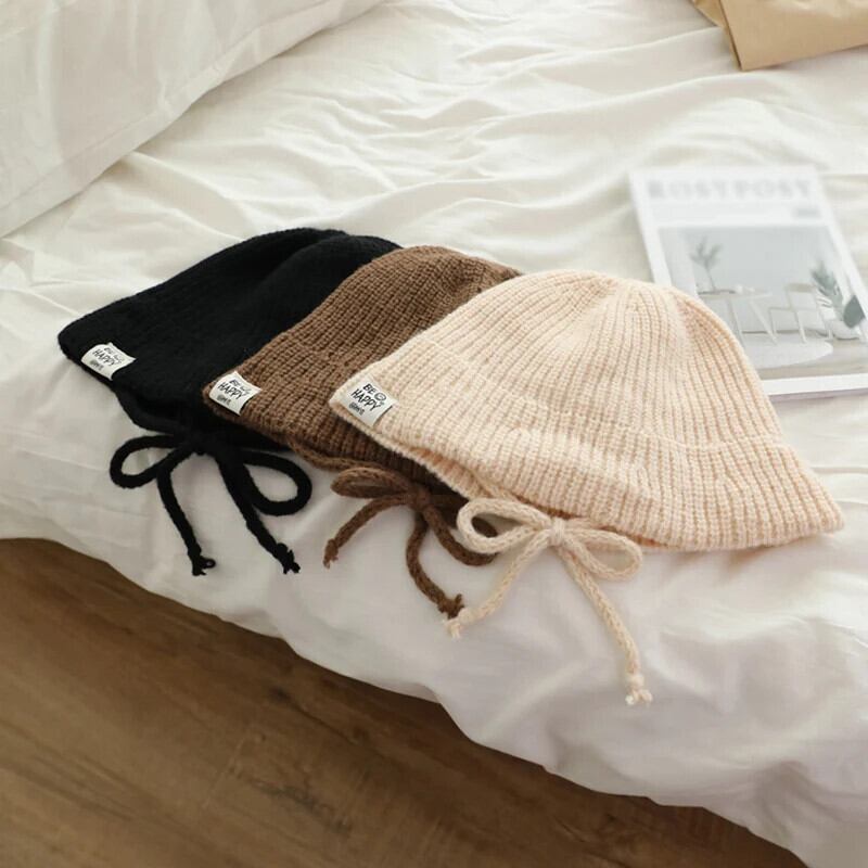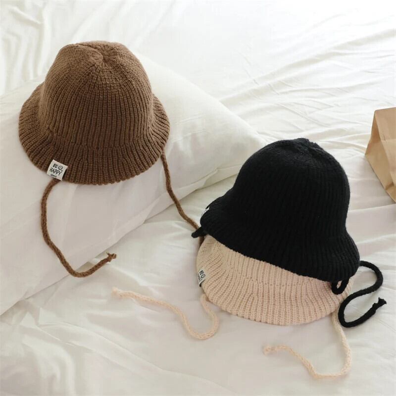 秋冬子供漁師帽子ベビー帽子暖かいニット子供ひもキャップ無地幼児男子女子ビーニーボンネット オータム 秋物 ウィンター 冬物 キッズ ヘアアクセサリー ソリッドカラー