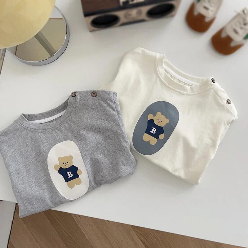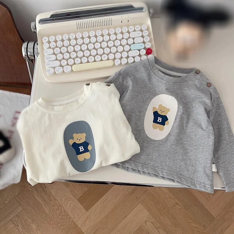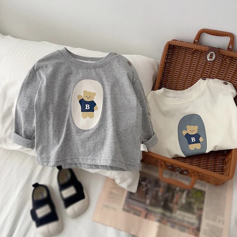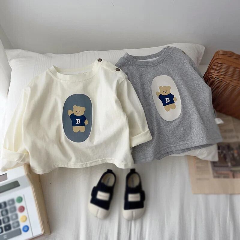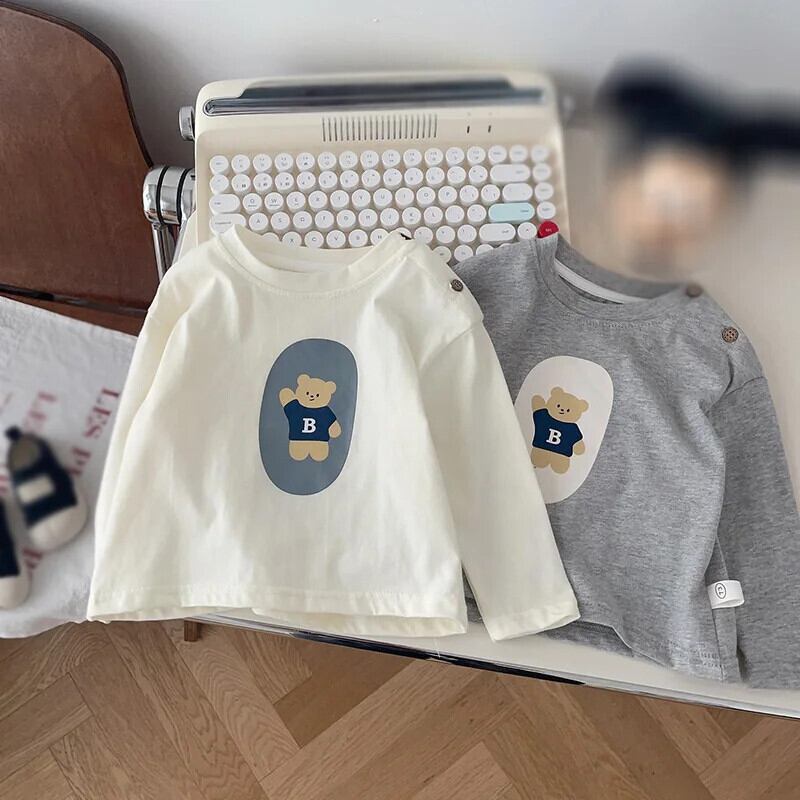 幼児赤ちゃん男子綿長袖 Tシャツ秋かわいい漫画リトルベアソフトキッズガールズ Tシャツプルオーバー Tシャツ ロング コットン 大人ガーリー スウィート キュート カジュアル オータム 秋物