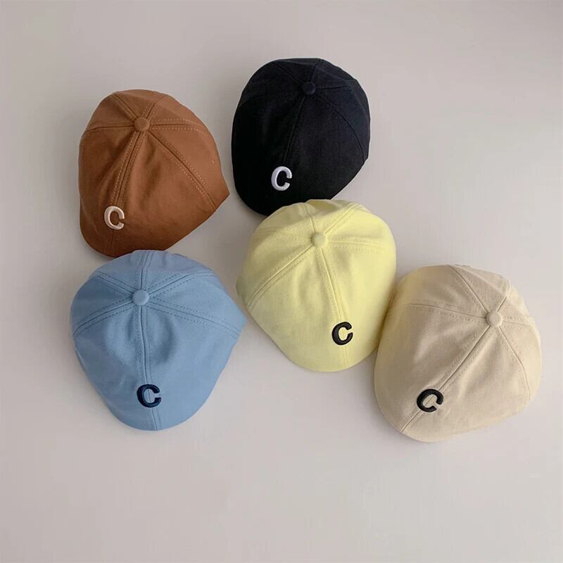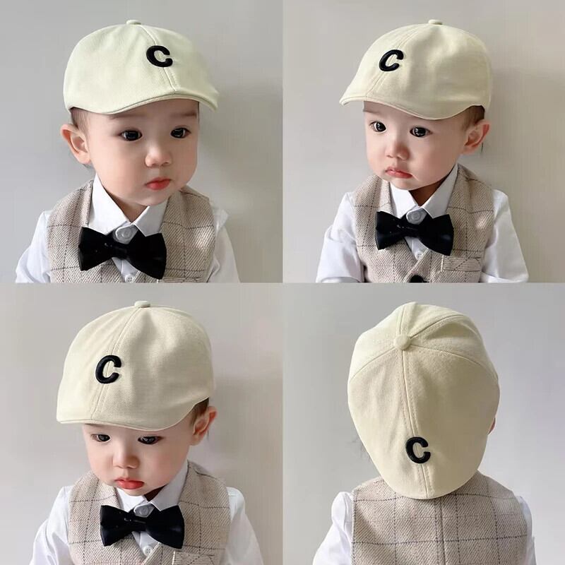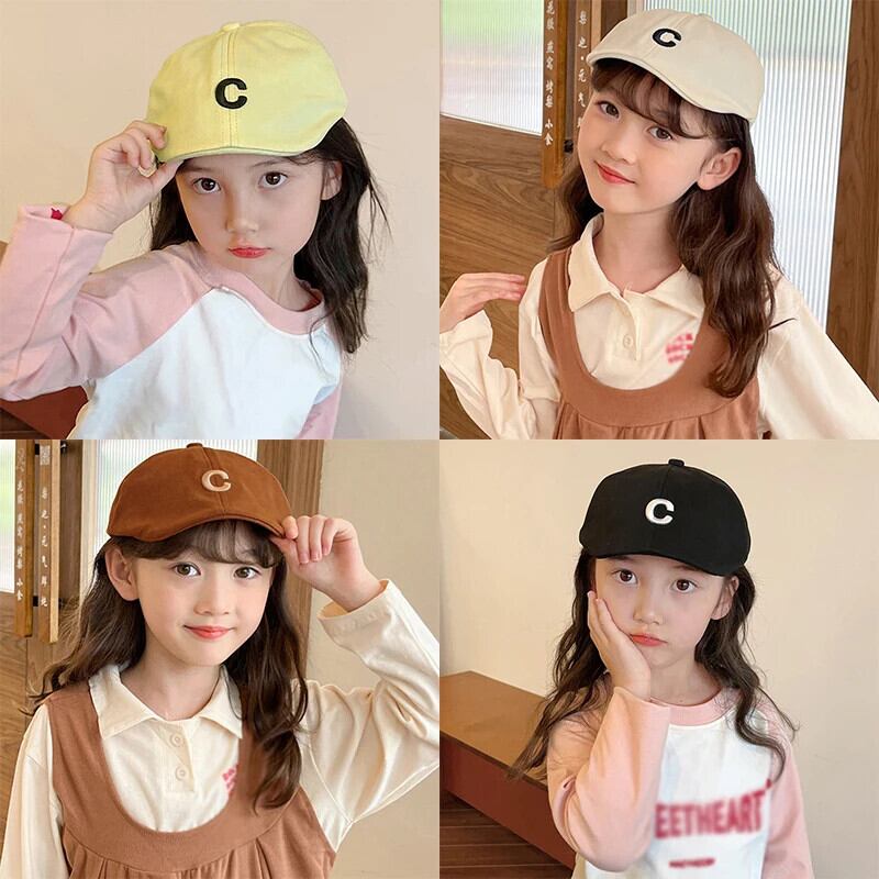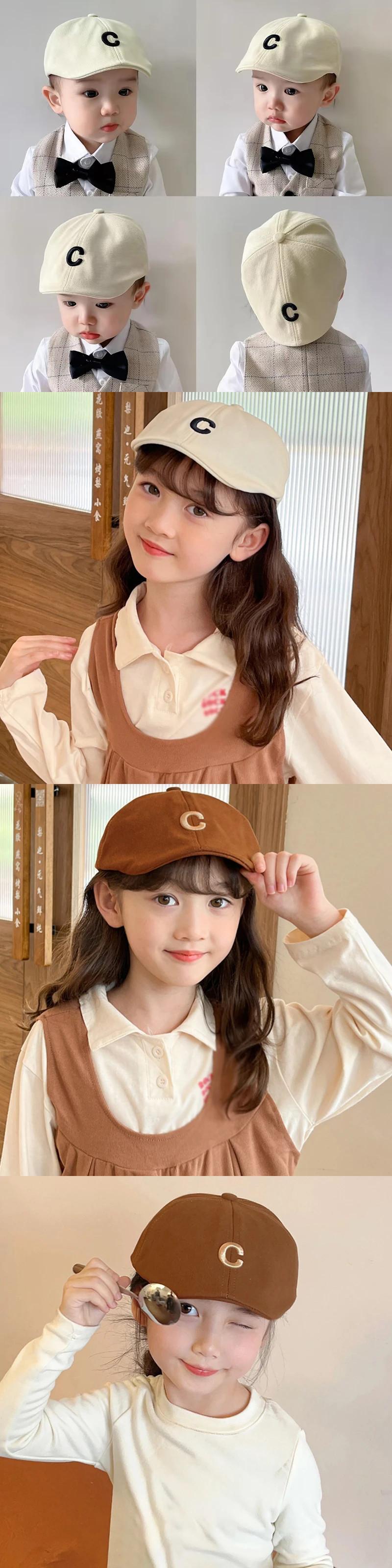 子供ベレー帽赤ちゃん女子男子子供キャップ文字 C 刺繍キャップ生まれた子画家帽子幼児女子帽子 レッド キッズ ベレット ヘアアクセサリー