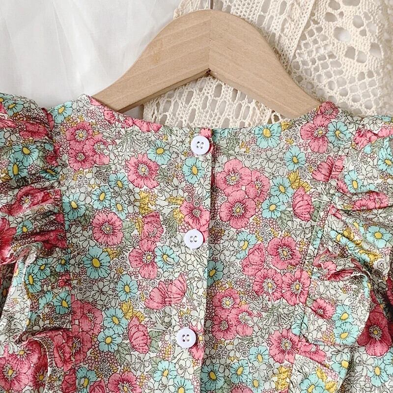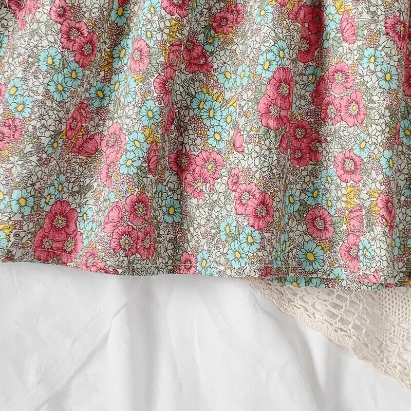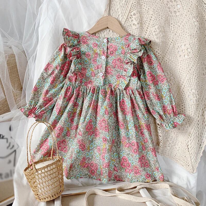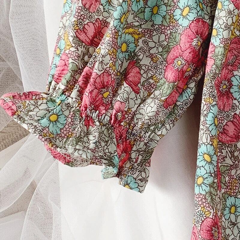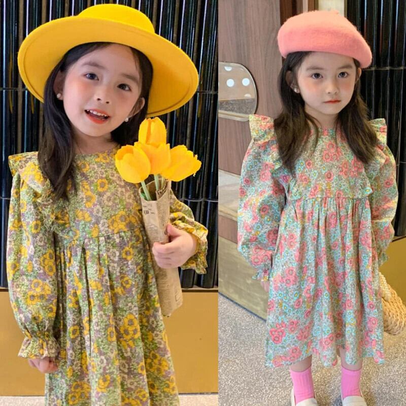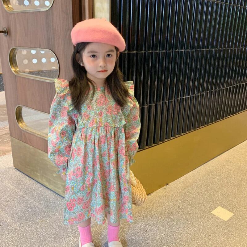 秋冬キッズガールズドレス花柄子供フライングスリーブベビーガールドレスフラワーガールドレス オータム 秋物 ウィンター 冬物 フラワーデザイン