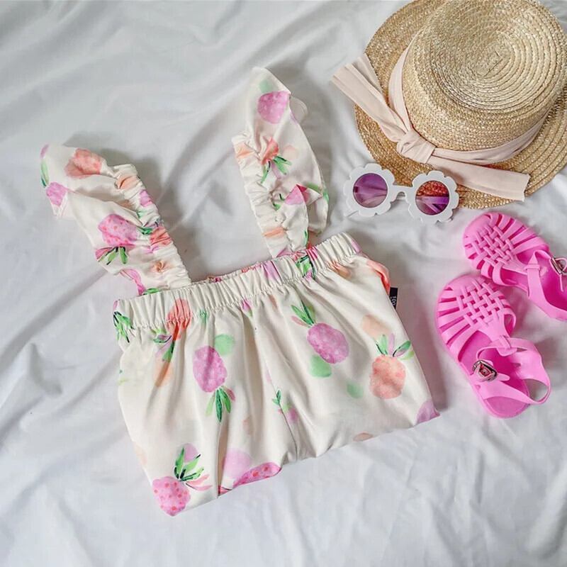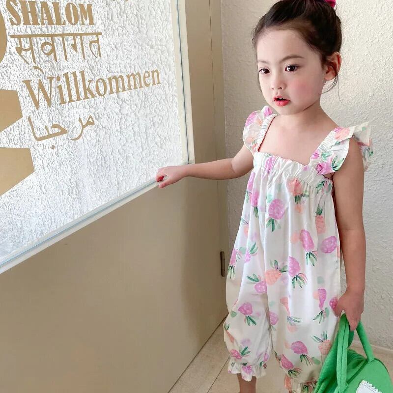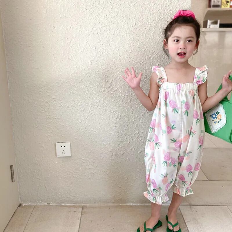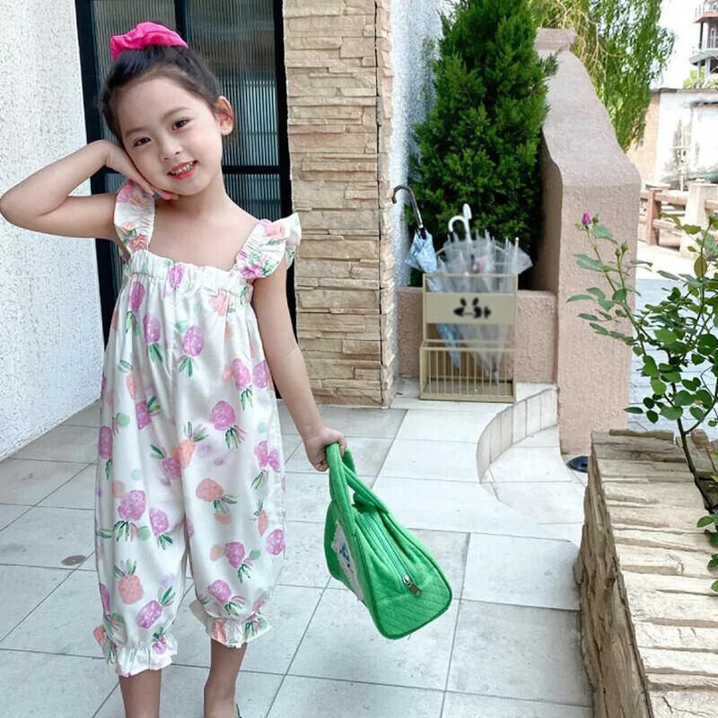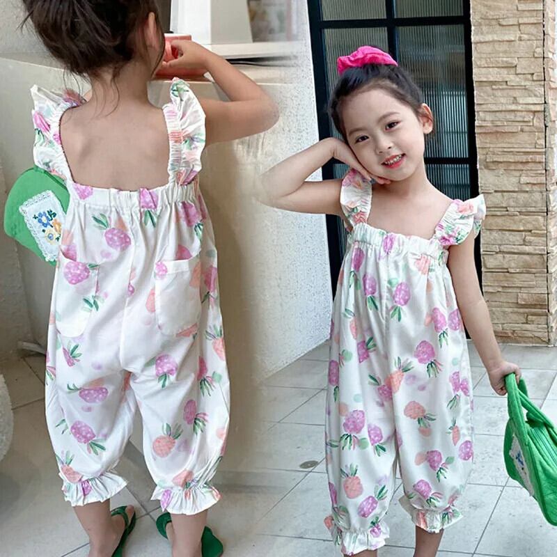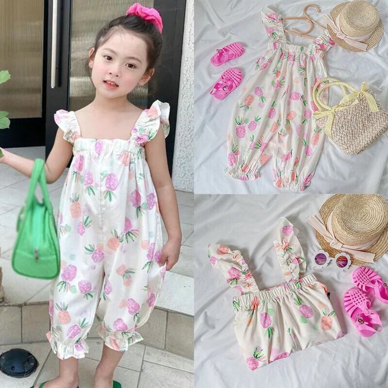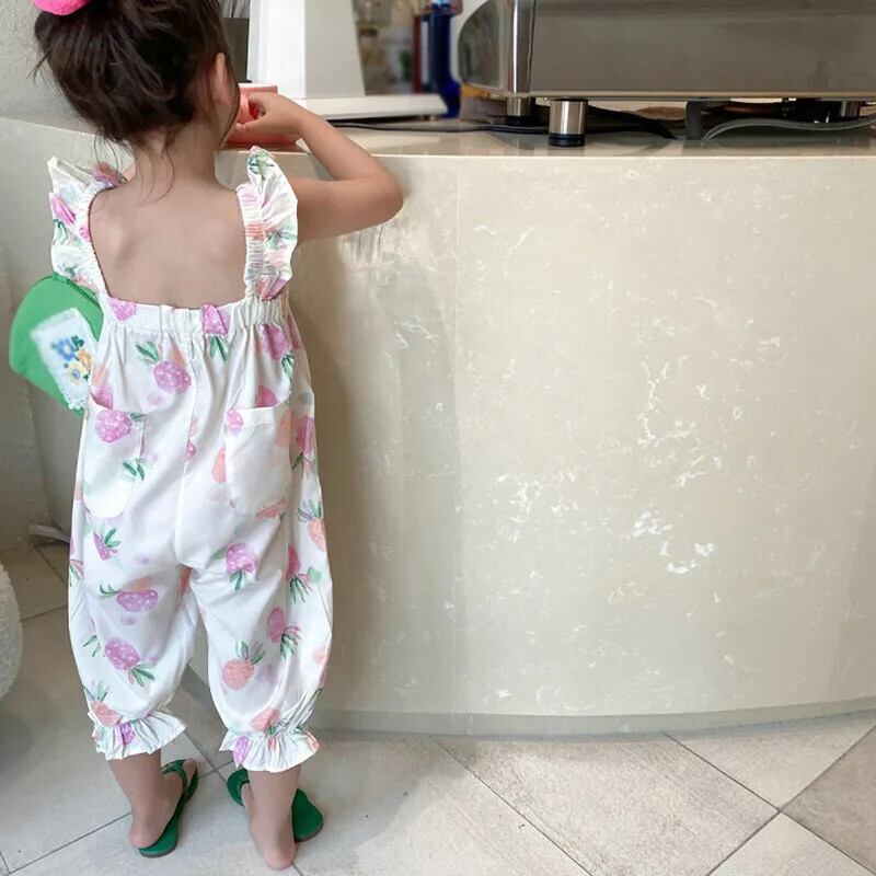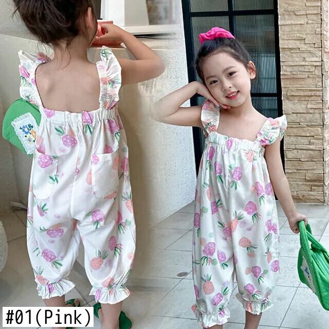 キッズ ベビー ガールズ フルーツ プリント ノースリーブ サスペンダー ジャンプスーツ 夏 かわいい 長ズボン 子供用 ロング 大人ガーリー スウィート キュート カジュアル サマー 夏物