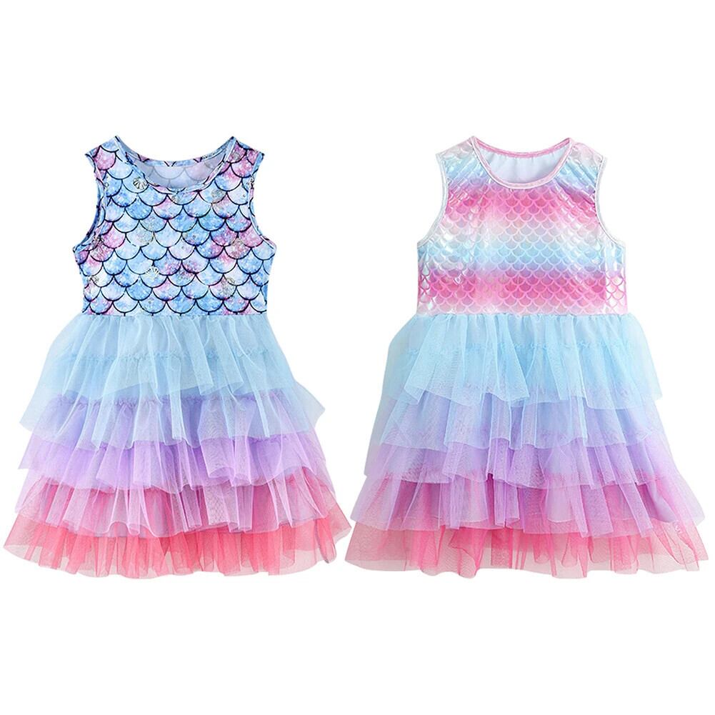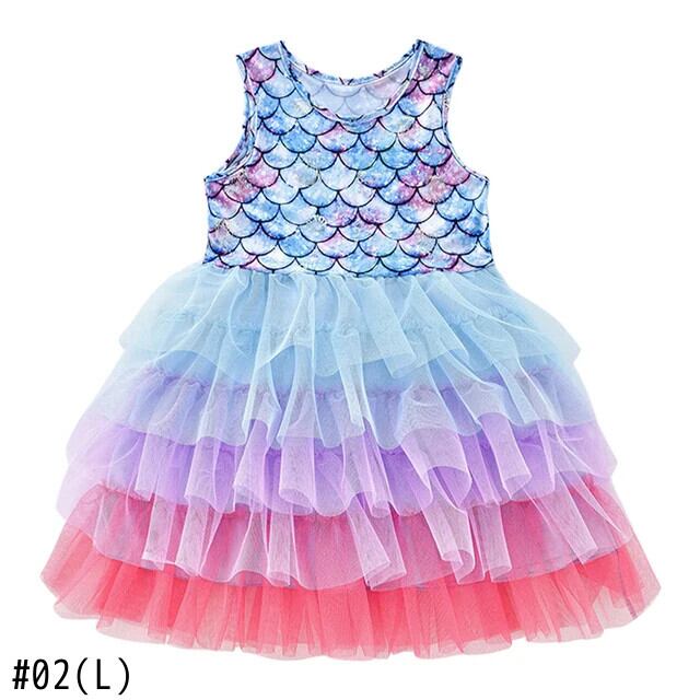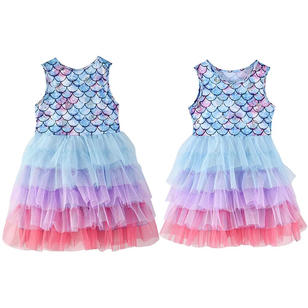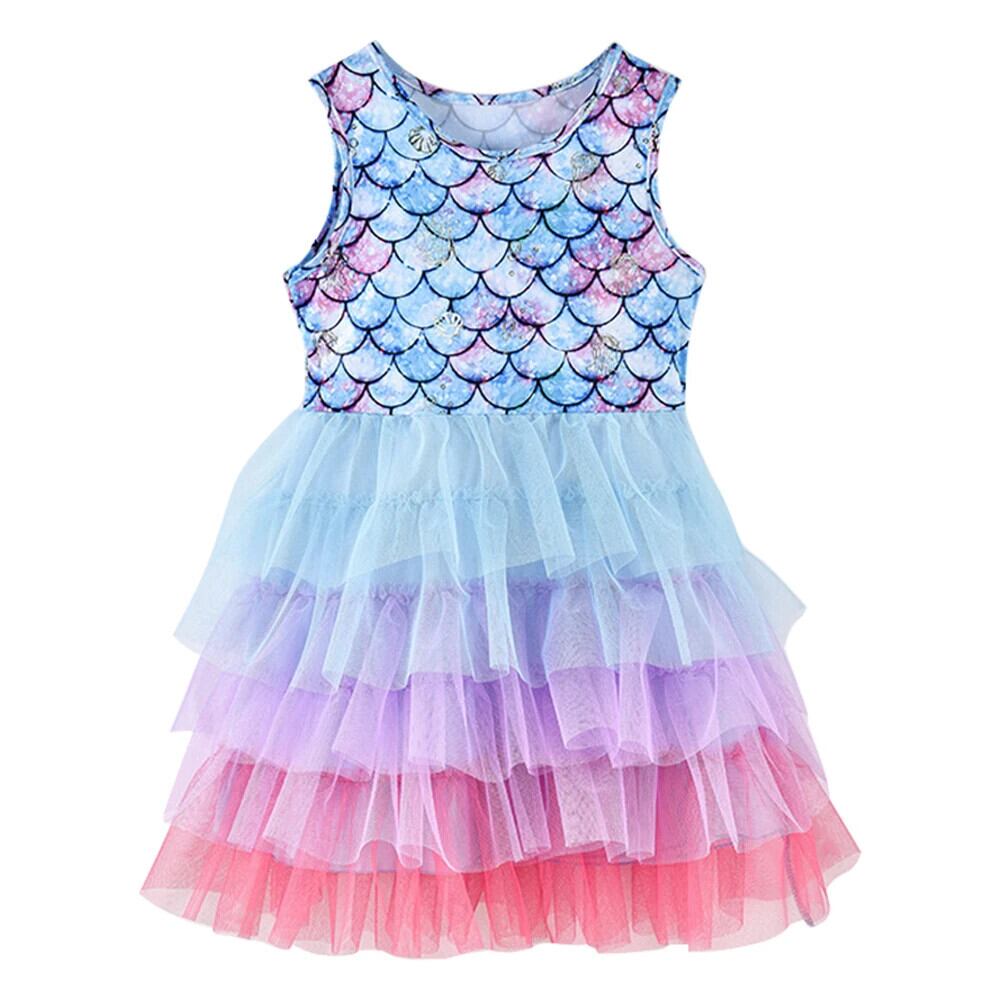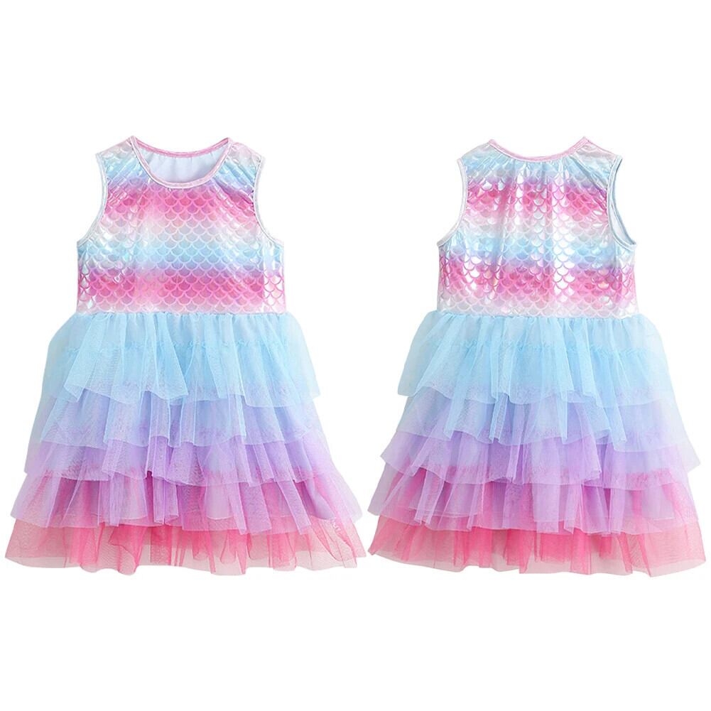 女子スパンコールレインボードレス 3-7 歳ファンシーキッズメッシュパーティーケーキ幼児女子夏誕生日 サマー 夏物