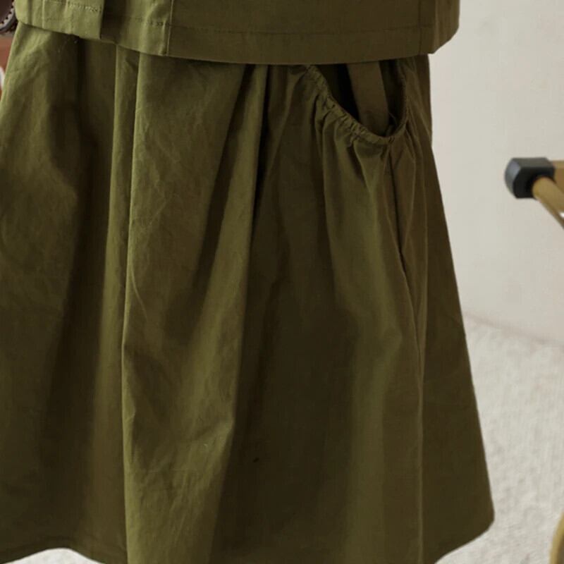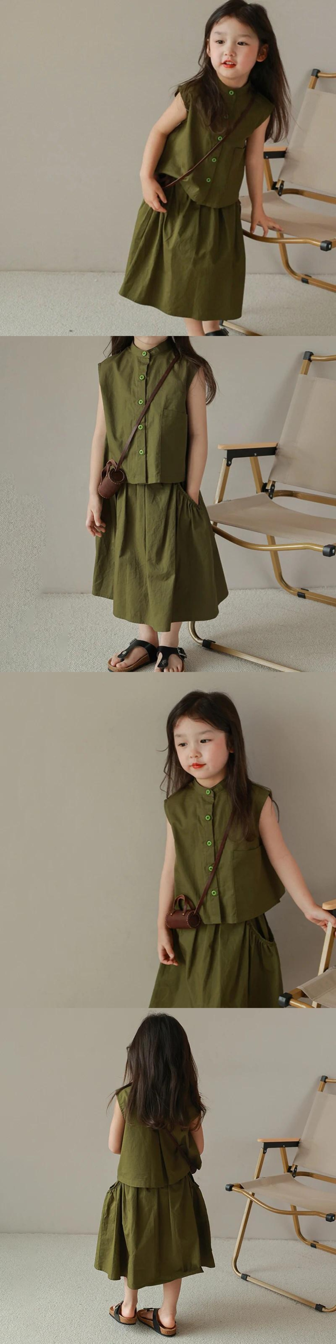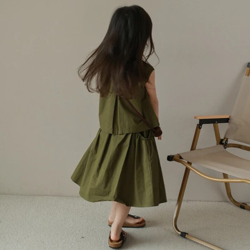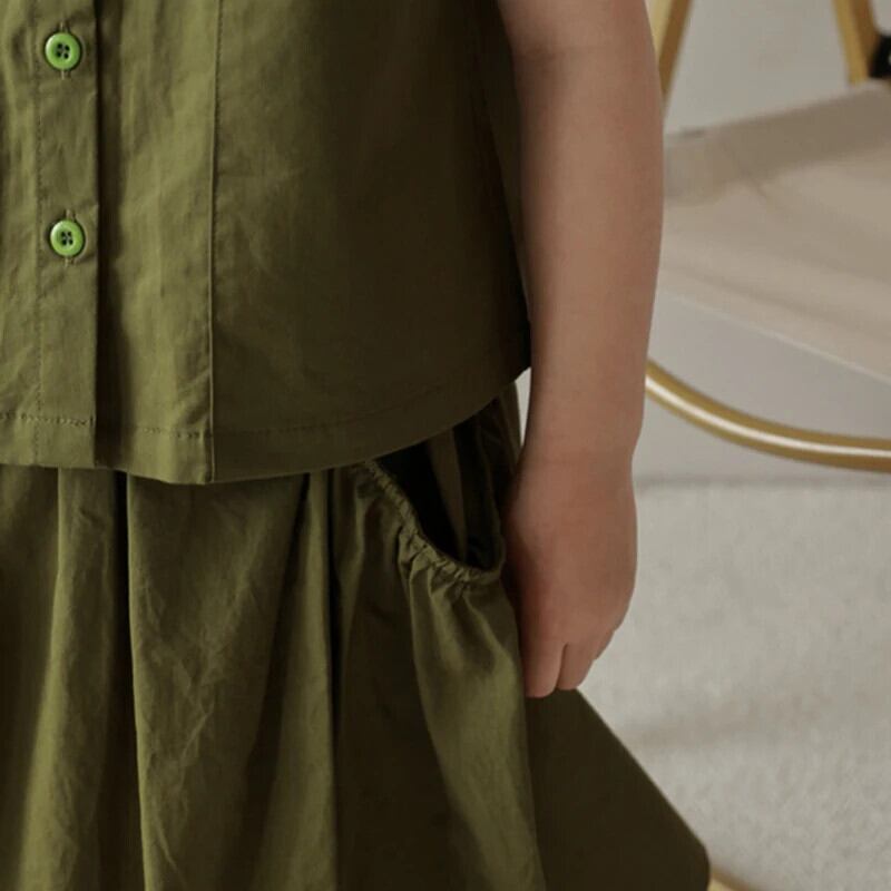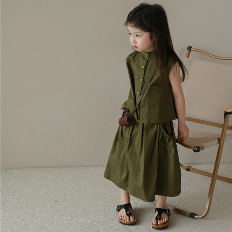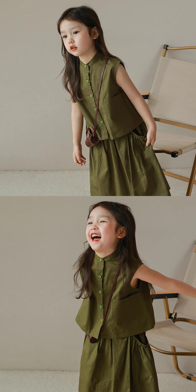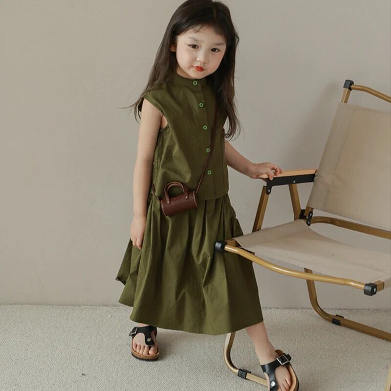 子供女子夏スタンドカラーシングルブレストスタイルブラウスプラスビスチェスカート 2 点セット女子 サマー 夏物