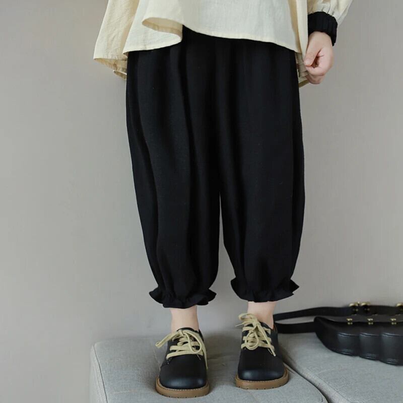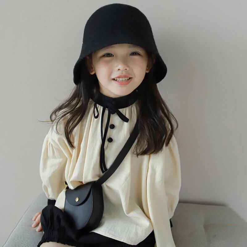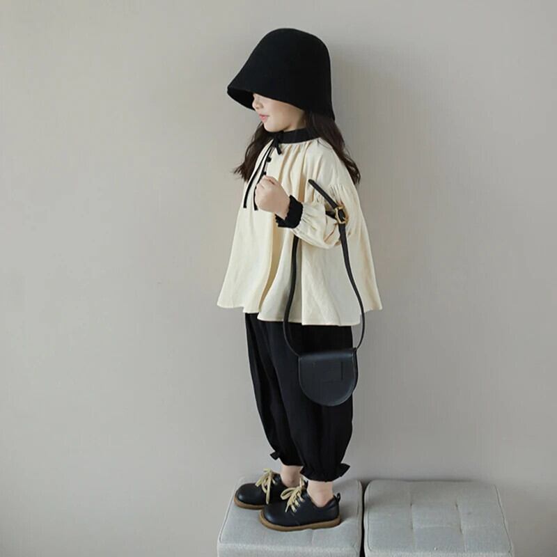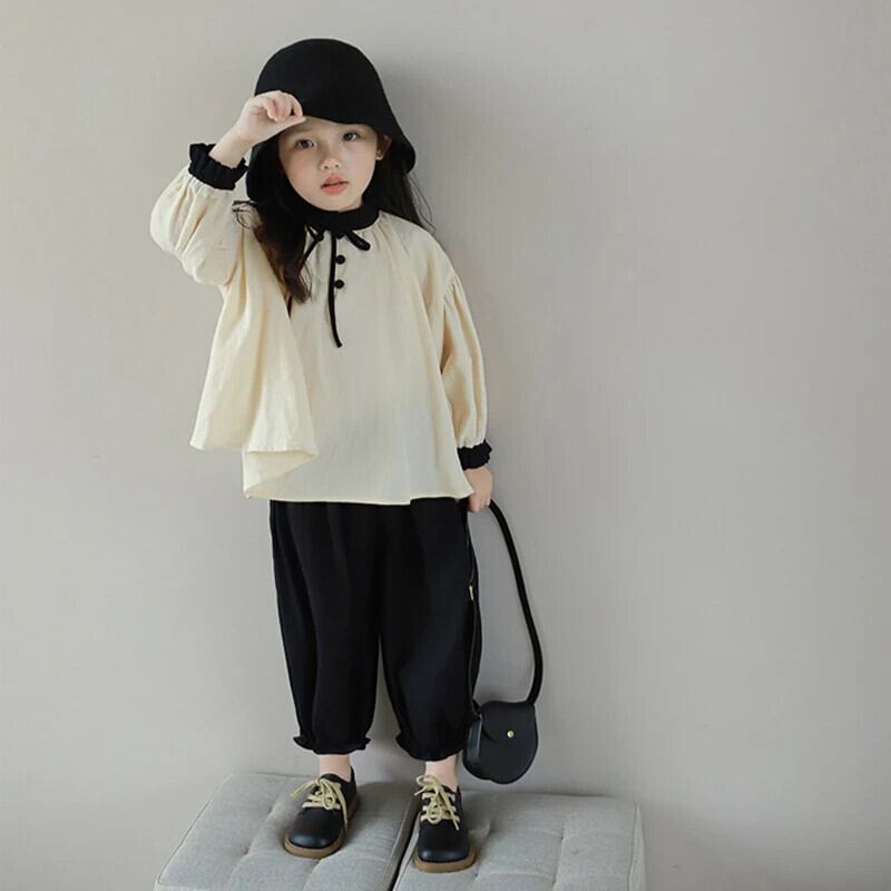 キッズガール立ち襟長袖シャツ+つぼみショーツパンツスーツ子供セット ロング ブルマー