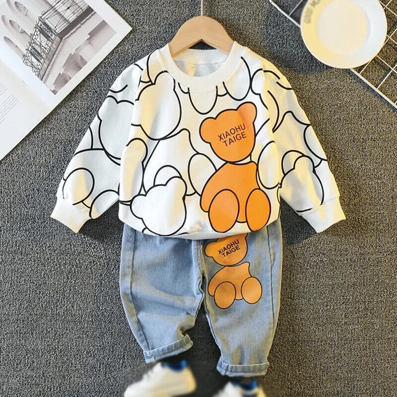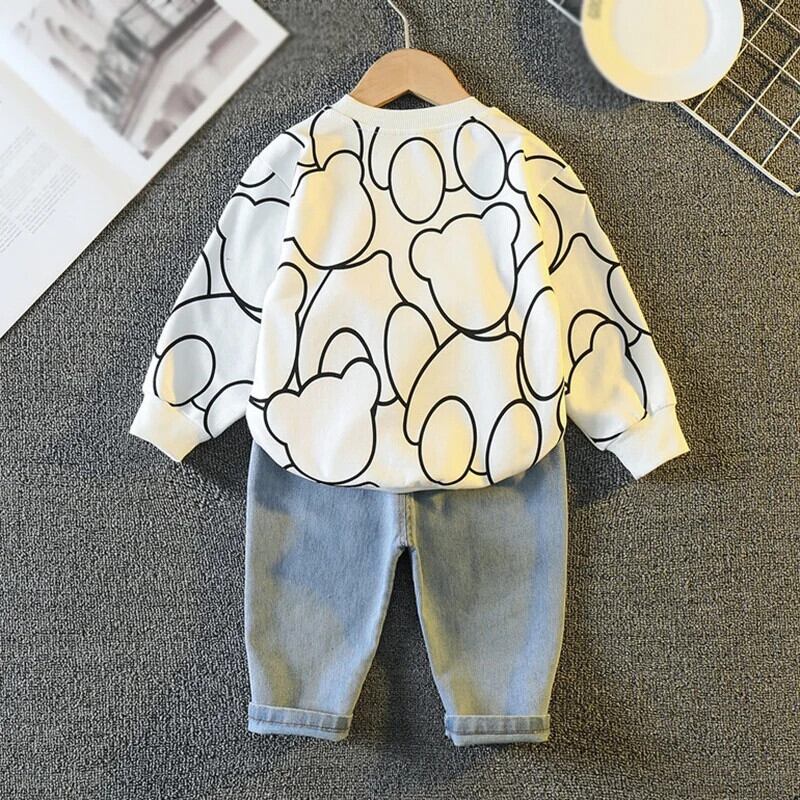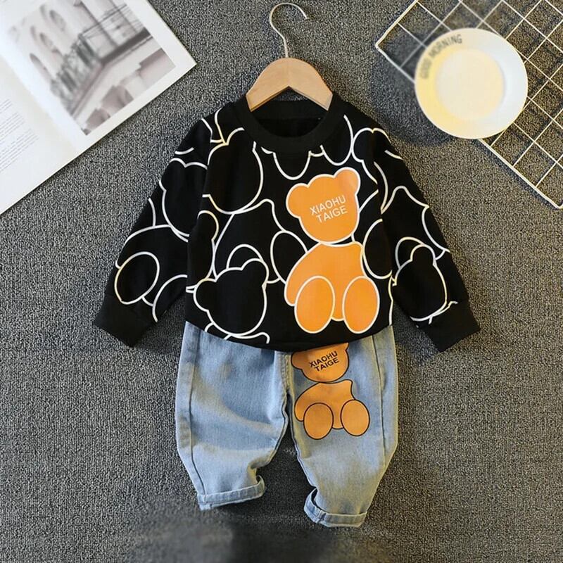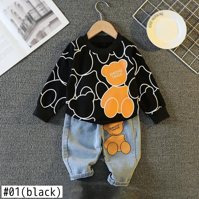 幼児男子漫画プリントトレーナー + ジーンズセット秋キッズ長袖デニムスーツ子供 ロング
